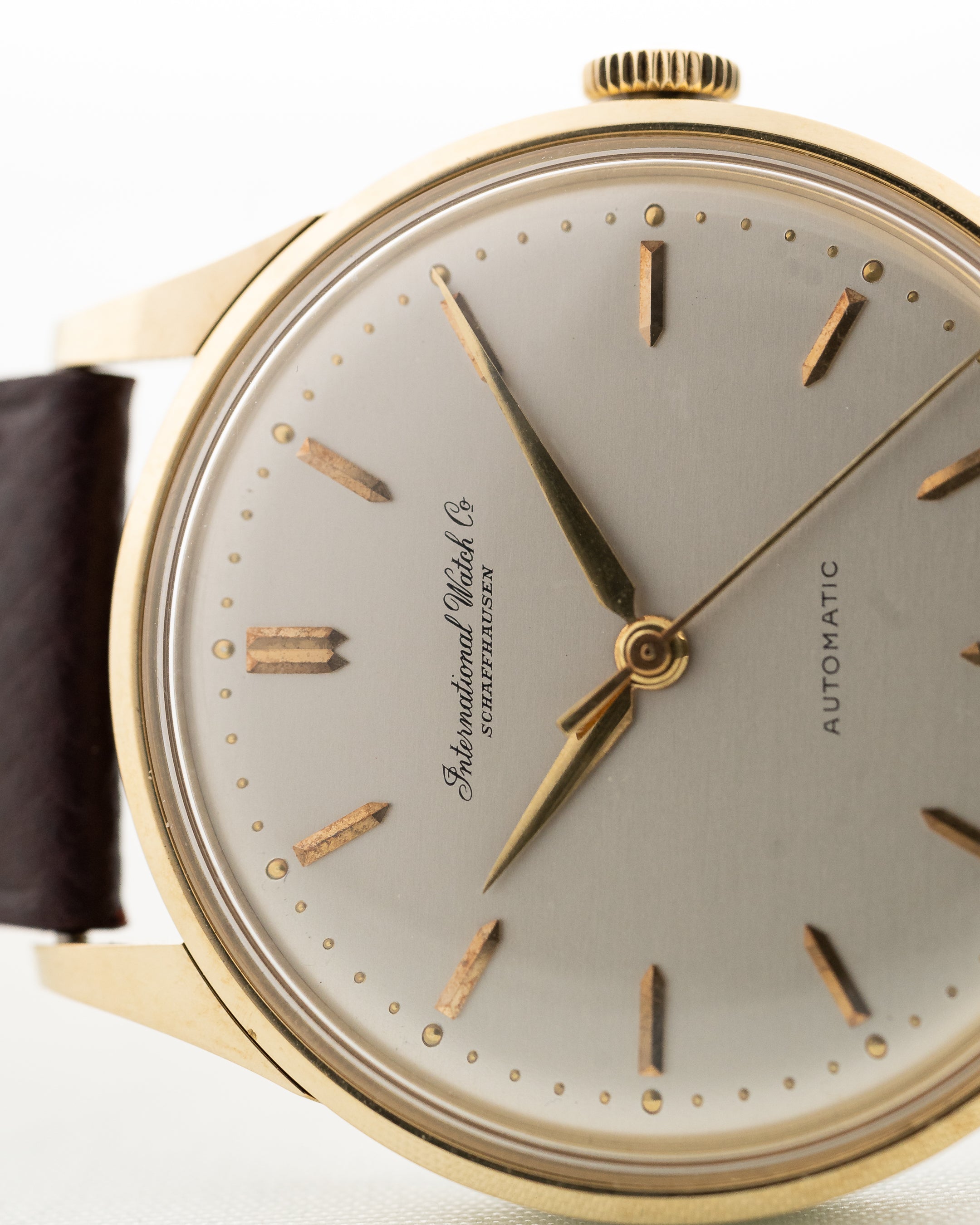 IWC a produit une très grande variété de montres-bracelets depuis le début, allant des montres habillées aux montres d'aviation. Ce modèle, dont le boîtier en or est en parfait état et dont les index en or jaune sont magnifiquement dessinés, restera une constante dans toutes les collections.