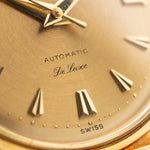 Sous le capot bat un calibre automatique 852 de 1958, et le cadran dégage une certaine élégance, sans doute due aux aiguilles Dauphine et aux index poignard incroyablement bien travaillés.