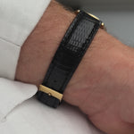 Cette IWC surdimensionnée, que l'on a rarement vue, est un merveilleux exemple de l'élégance intemporelle des montres-bracelets vintage des années 1940. La montre, connue sous le nom de "Hermet", possède un fond de boîtier hermétiquement fermé et une couronne encastrée qui la protègent de l'humidité et de la poussière.