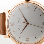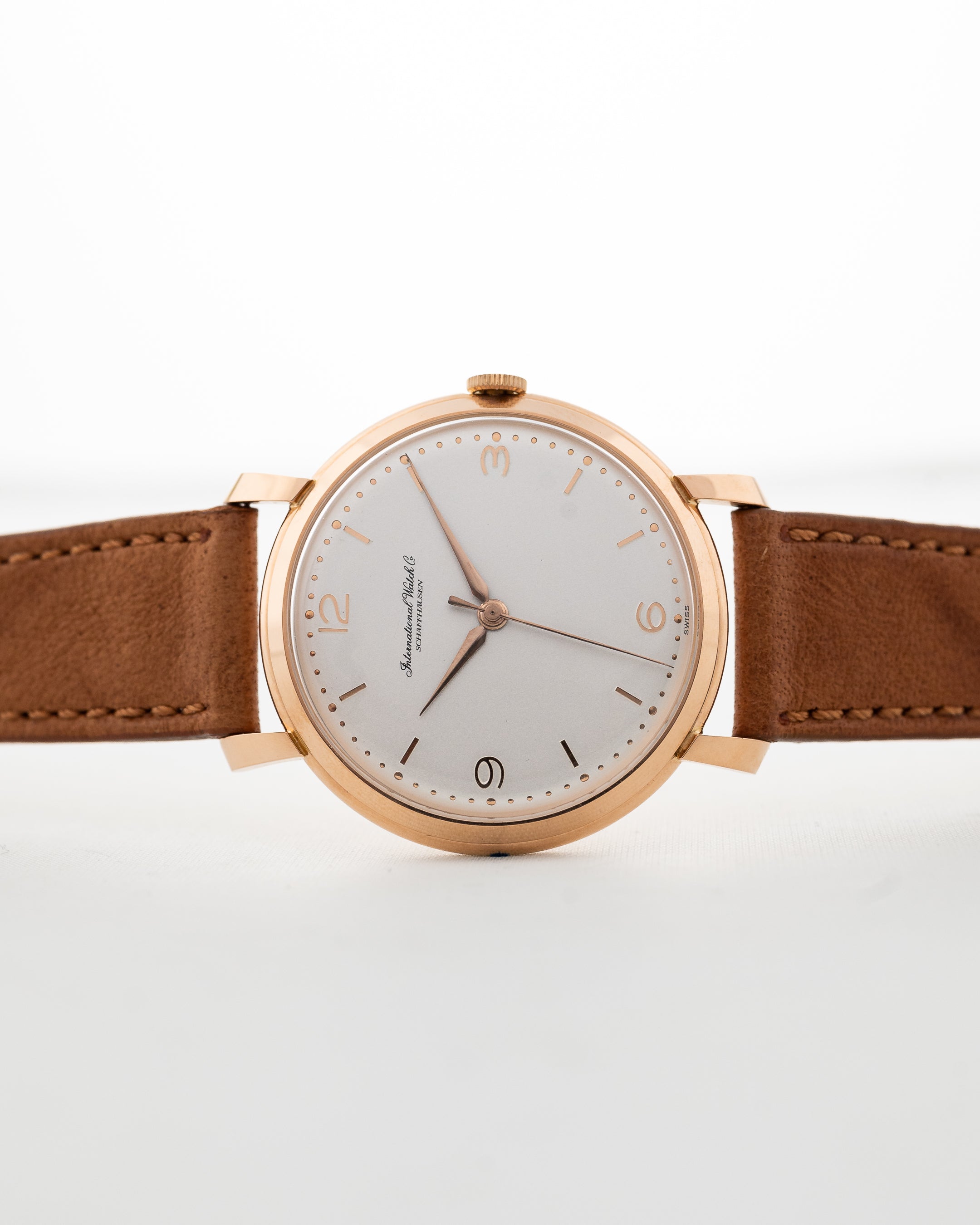 IWC a produit une très grande variété de montres-bracelets depuis le début, allant des montres habillées aux montres d'aviation. Cet exemple, en or rose 18 carats avec des cornes en forme d'aileron de requin, resterait une constante dans les collections de tout un chacun, d'autant plus qu'il est livré dans un état NOS et avec les papiers d'origine.