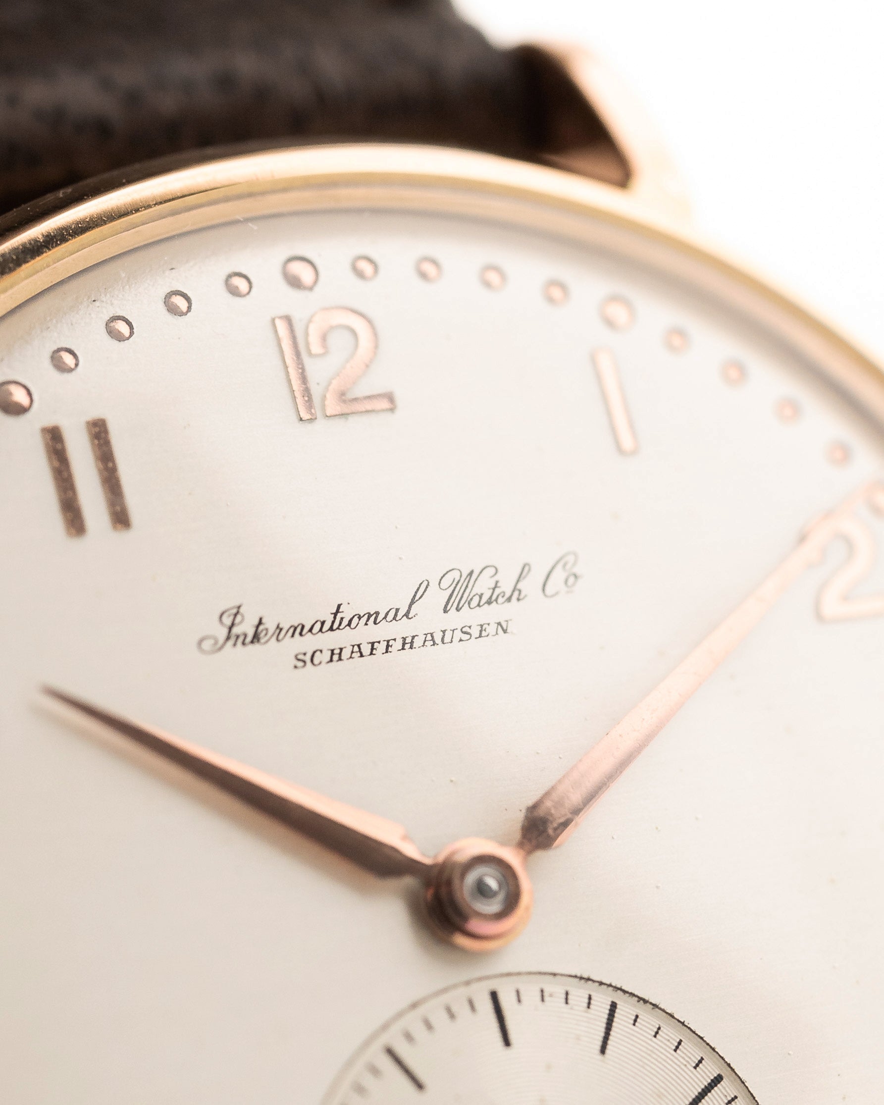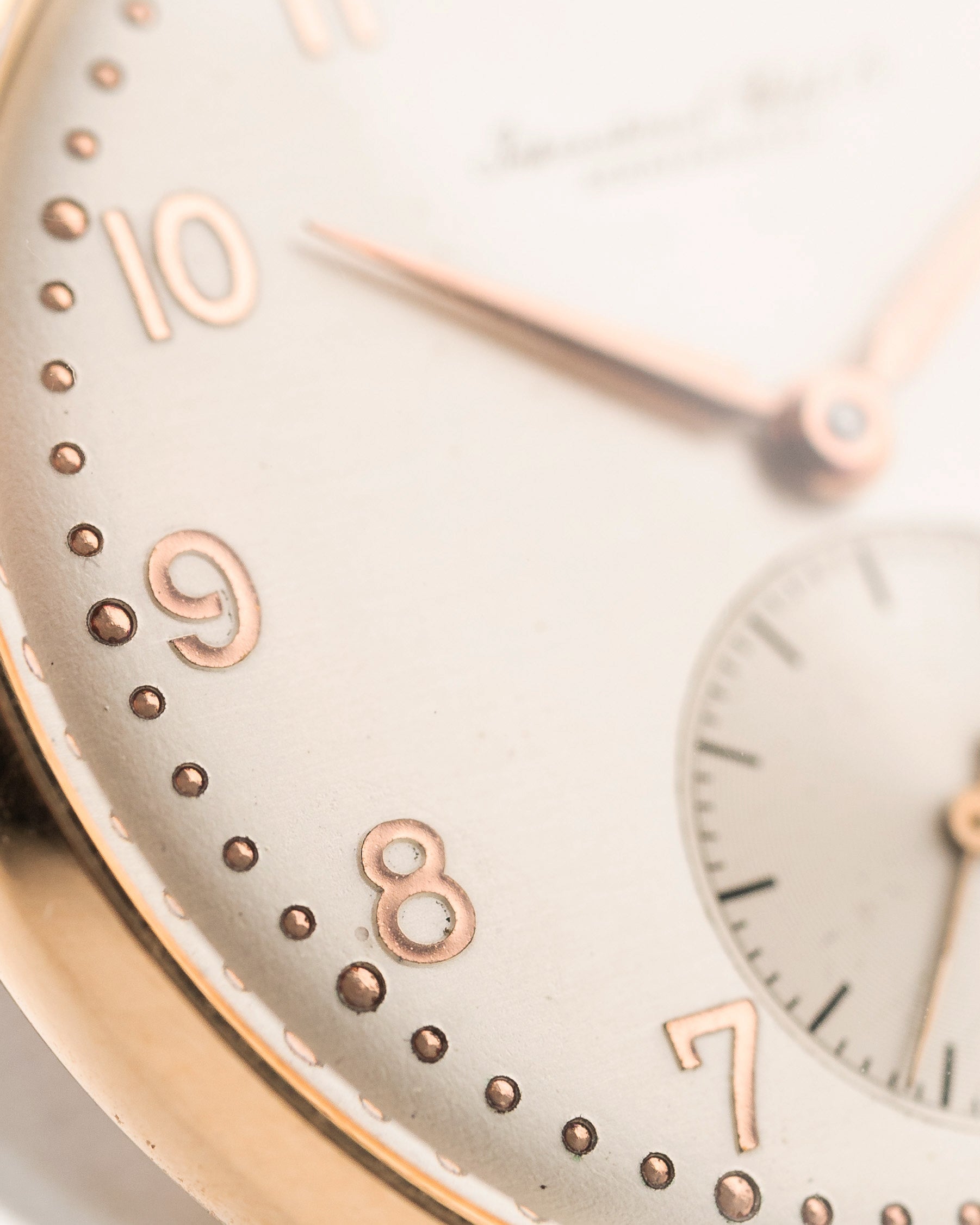 Cette superbe montre habillée IWC présente un design classique pour les secondes, des aiguilles alpha et des chiffres arabes en or rose, un cadran épuré de couleur argentée et est équipée du très célèbre mouvement calibre 88. IWC est depuis longtemps synonyme de recherche de la beauté dans la simplicité, et cet exemple illustre bien cette philosophie avec son boîtier en or rose 18 carats d'un diamètre de 35 mm.
