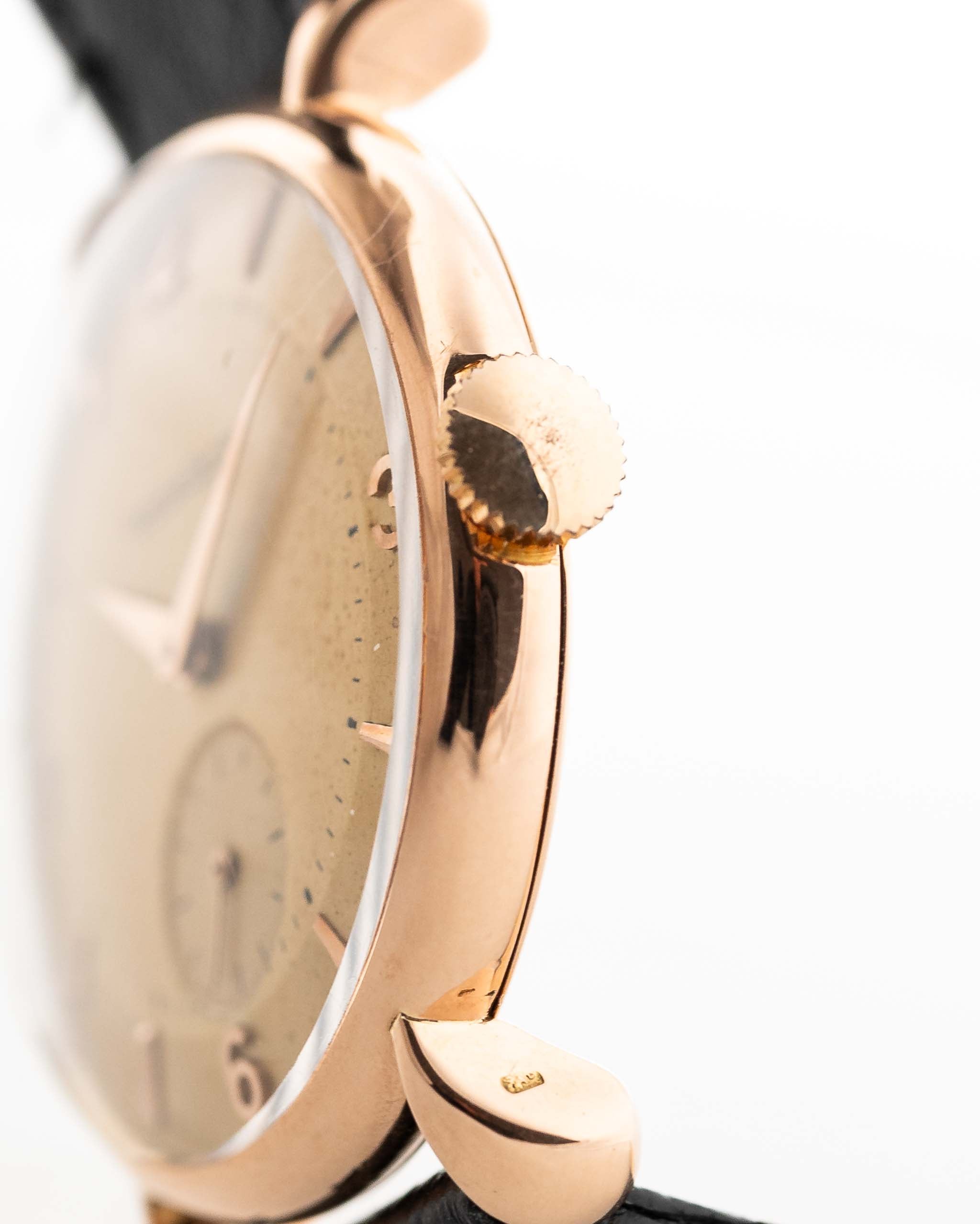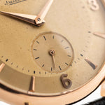 La perfection fonctionnelle de cette Jaeger-LeCoultre n'est pas surprenante ; elle atteint un degré stupéfiant d'élégance et de précision, tout en un seul garde-temps. Le boîtier en or rose lumineux avec ses cornes en forme de goutte d'eau et le léger cadran en camembert avec minuterie et seconde secondaire se complètent à merveille. Cette montre est une perfection.