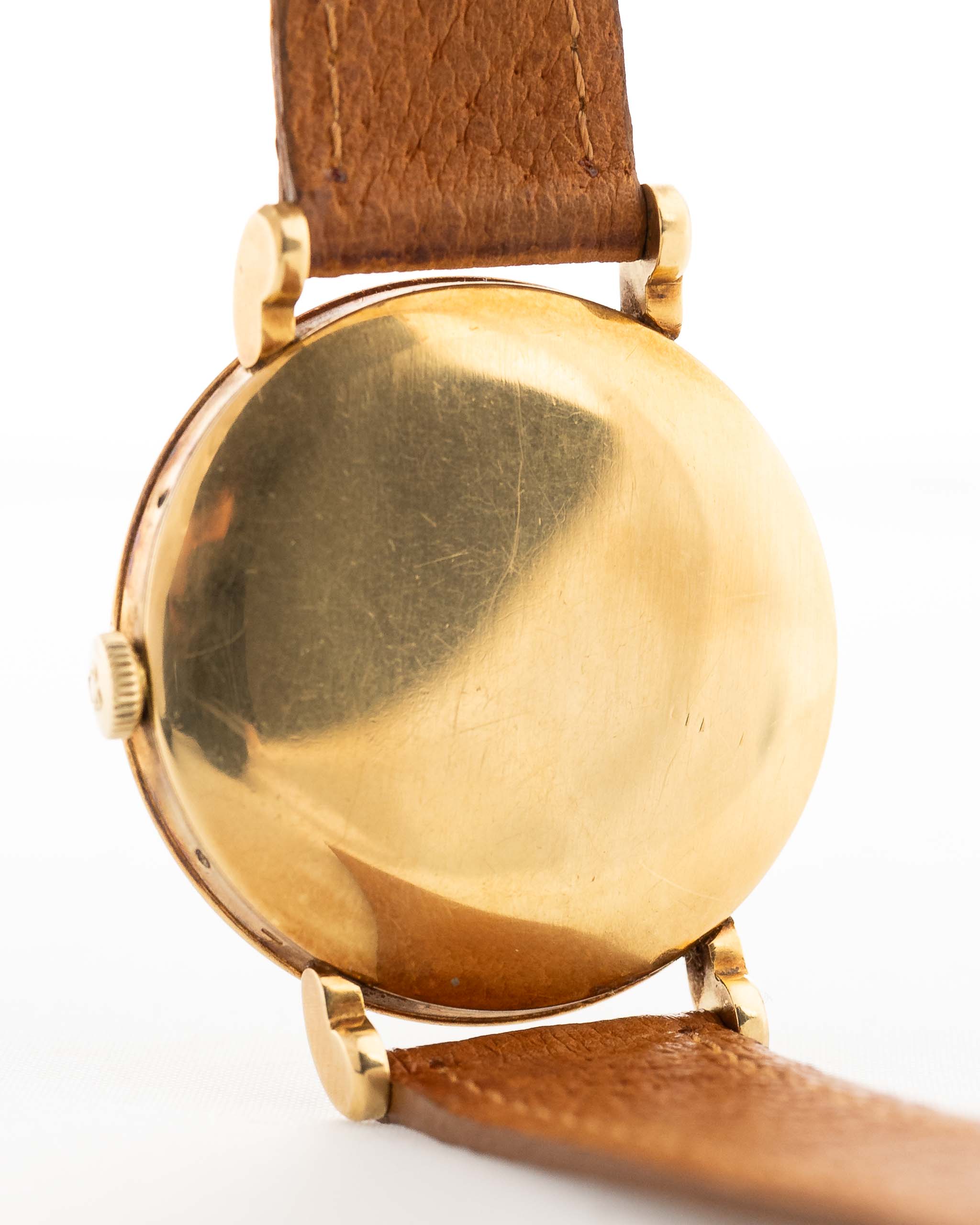 L'Omega Cosmic a été introduite en 1947 et a figuré au catalogue jusqu'en 1956 en tant que montre la plus prestigieuse du catalogue de la marque. Notre exemplaire est une référence 2485 en or jaune 18 carats, mesure 37 mm et abrite le mouvement Omega Calibre 27 DL PC basé sur Lemania.