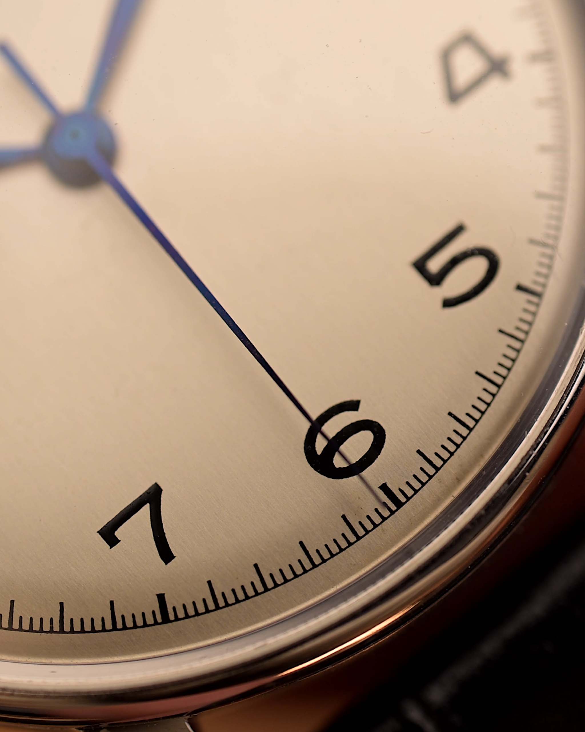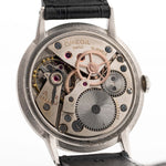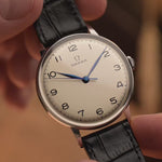 Le cadran argenté brossé, avec ses chiffres Art déco audacieux et ses aiguilles feuilles en acier bleui, rayonne d'une sophistication intemporelle, tandis que le généreux boîtier en acier inoxydable de 37 mm confère à cette pièce une présence bien au-delà de son époque. Considéré comme surdimensionné à l'époque, il se porte à merveille, même selon les normes modernes, en maintenant un équilibre parfait entre proportion et grâce.