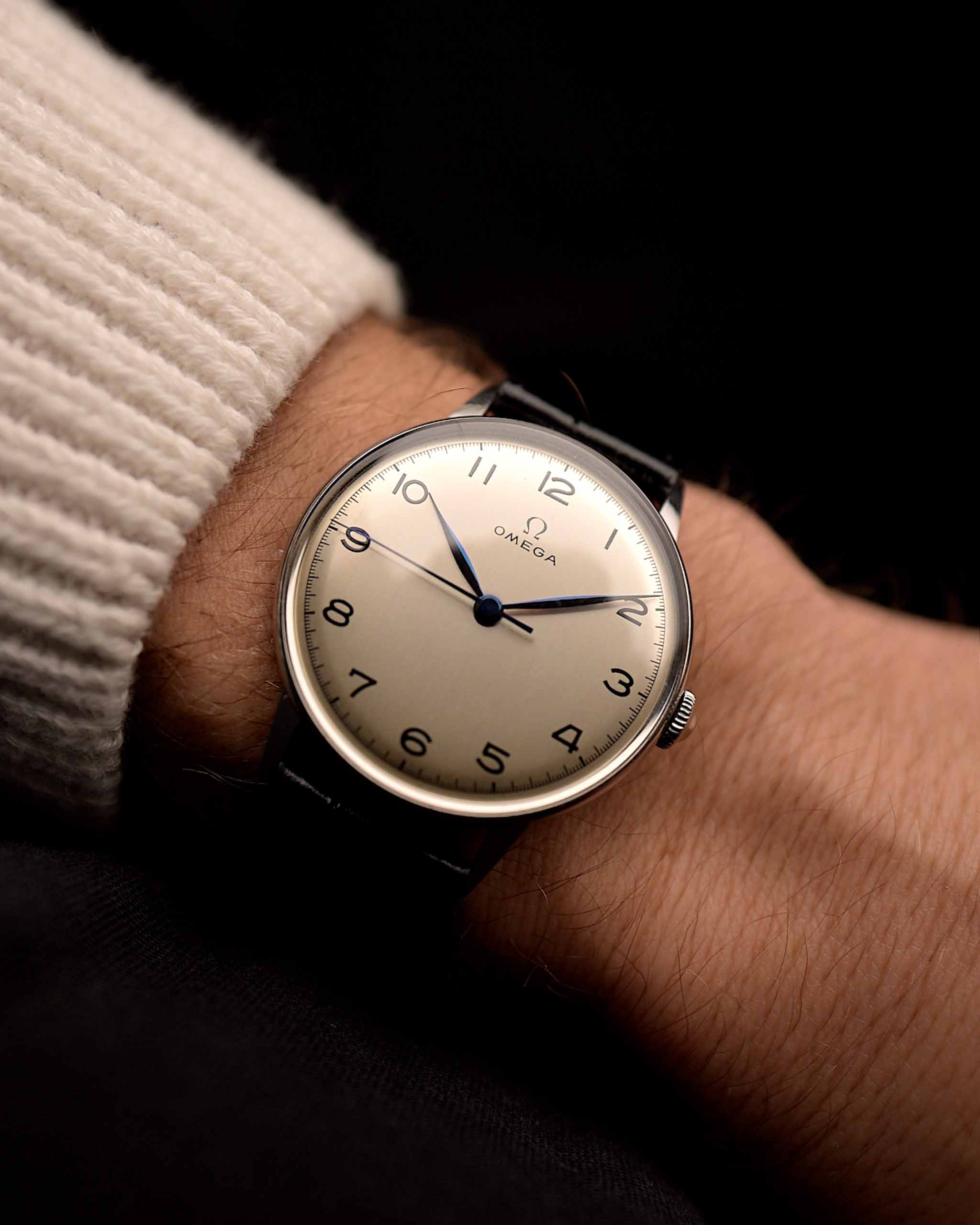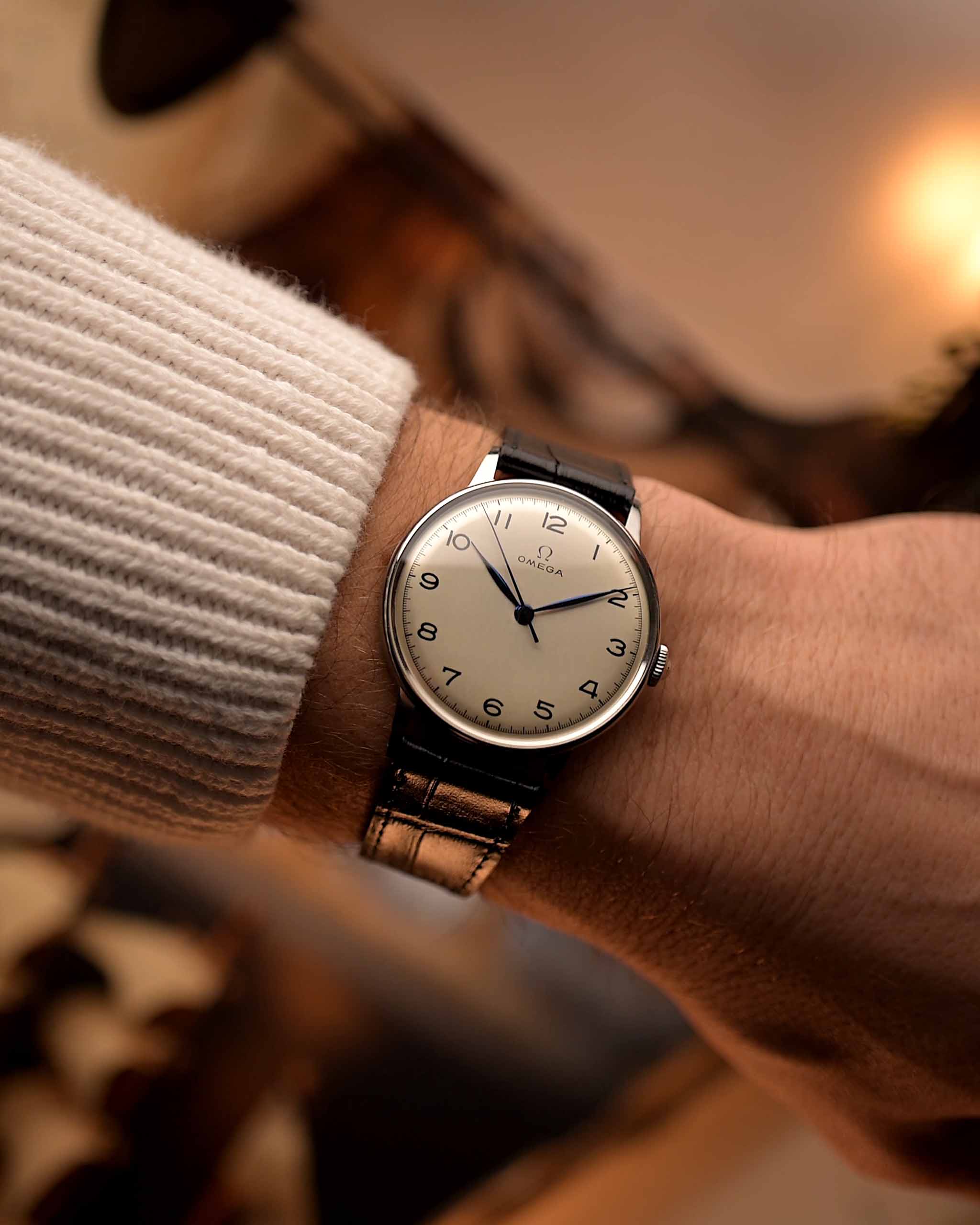 Cette Omega Ref. 2325 de 1944 reflète le langage stylistique raffiné des années 1940 - une époque où les montres-bracelets sont passées du statut d'instruments à celui d'expressions d'un style personnel.