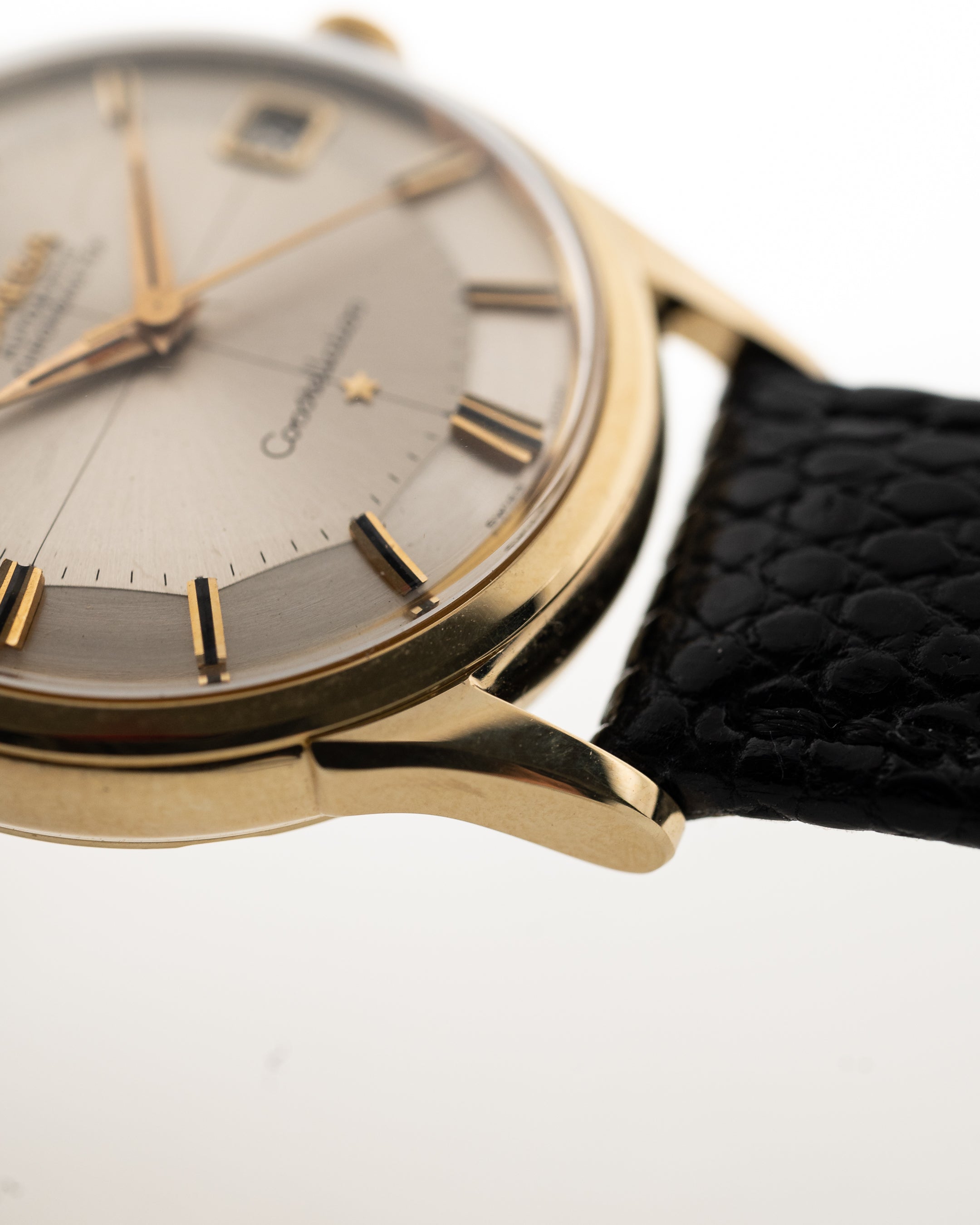 Bien proportionnée, simple et classique, cette Constellation présente un fond de boîtier vissé, le calibre 561 du chronomètre automatique Omega et de superbes cornes légèrement tournées vers le bas, et se présente dans un bel état intact.