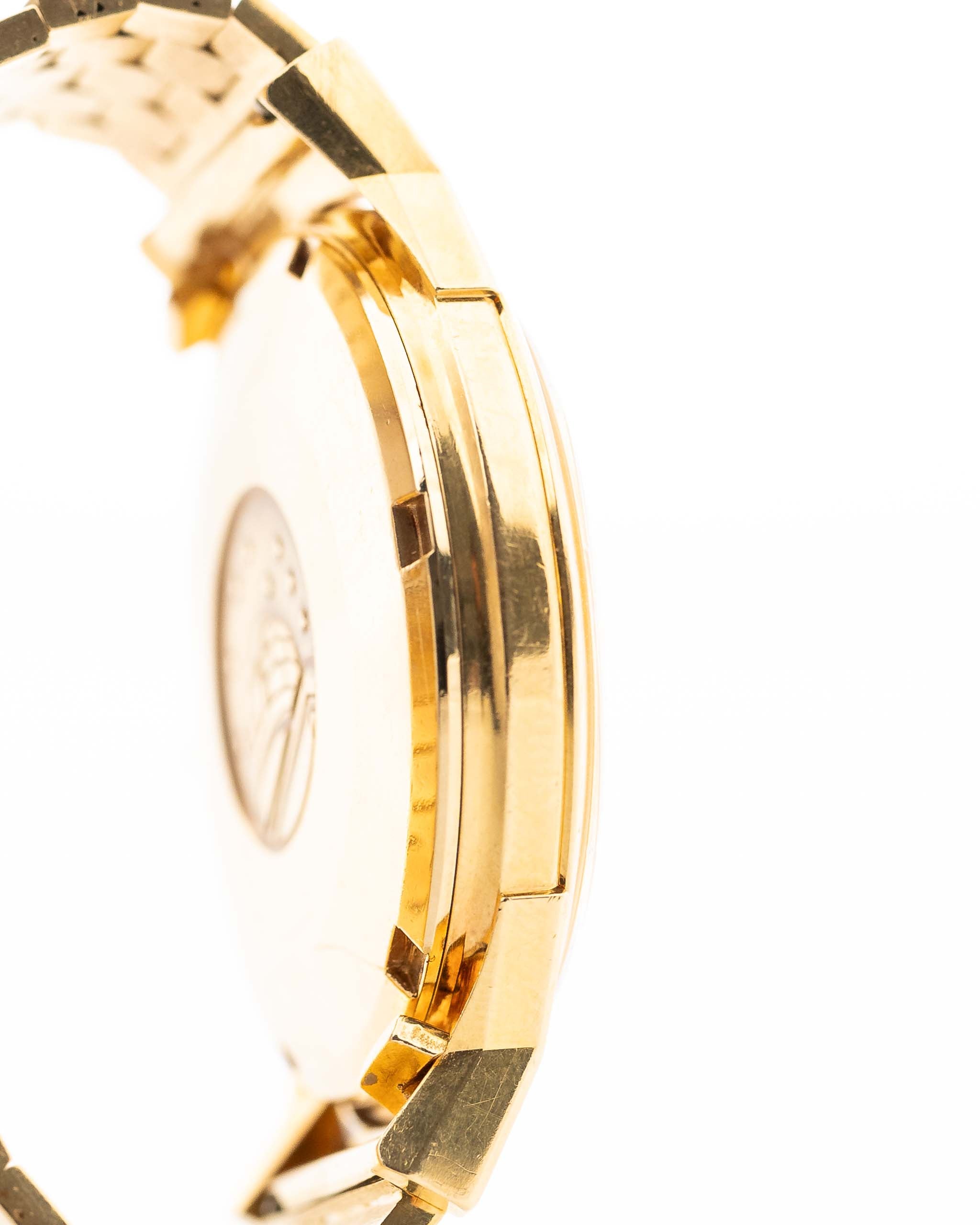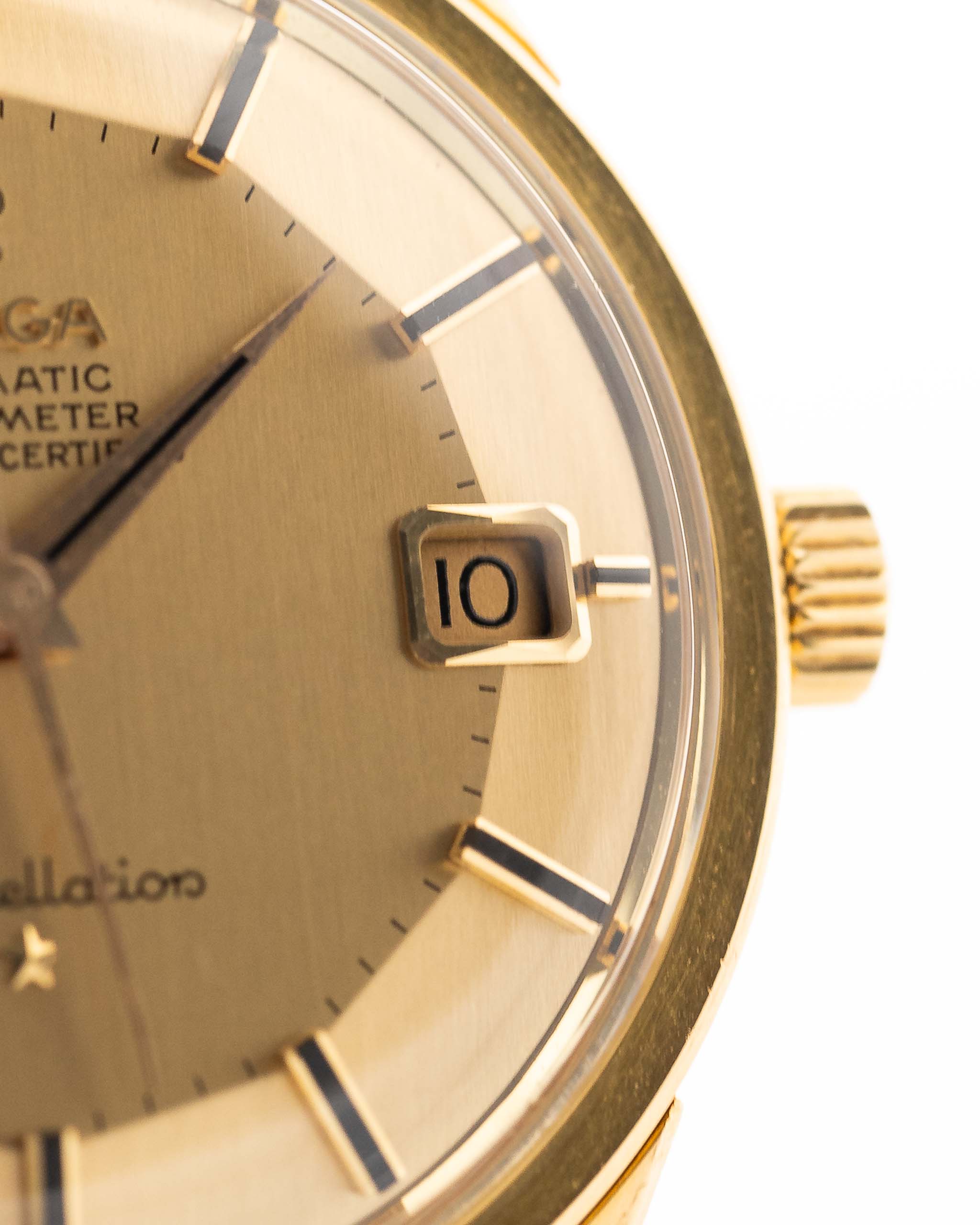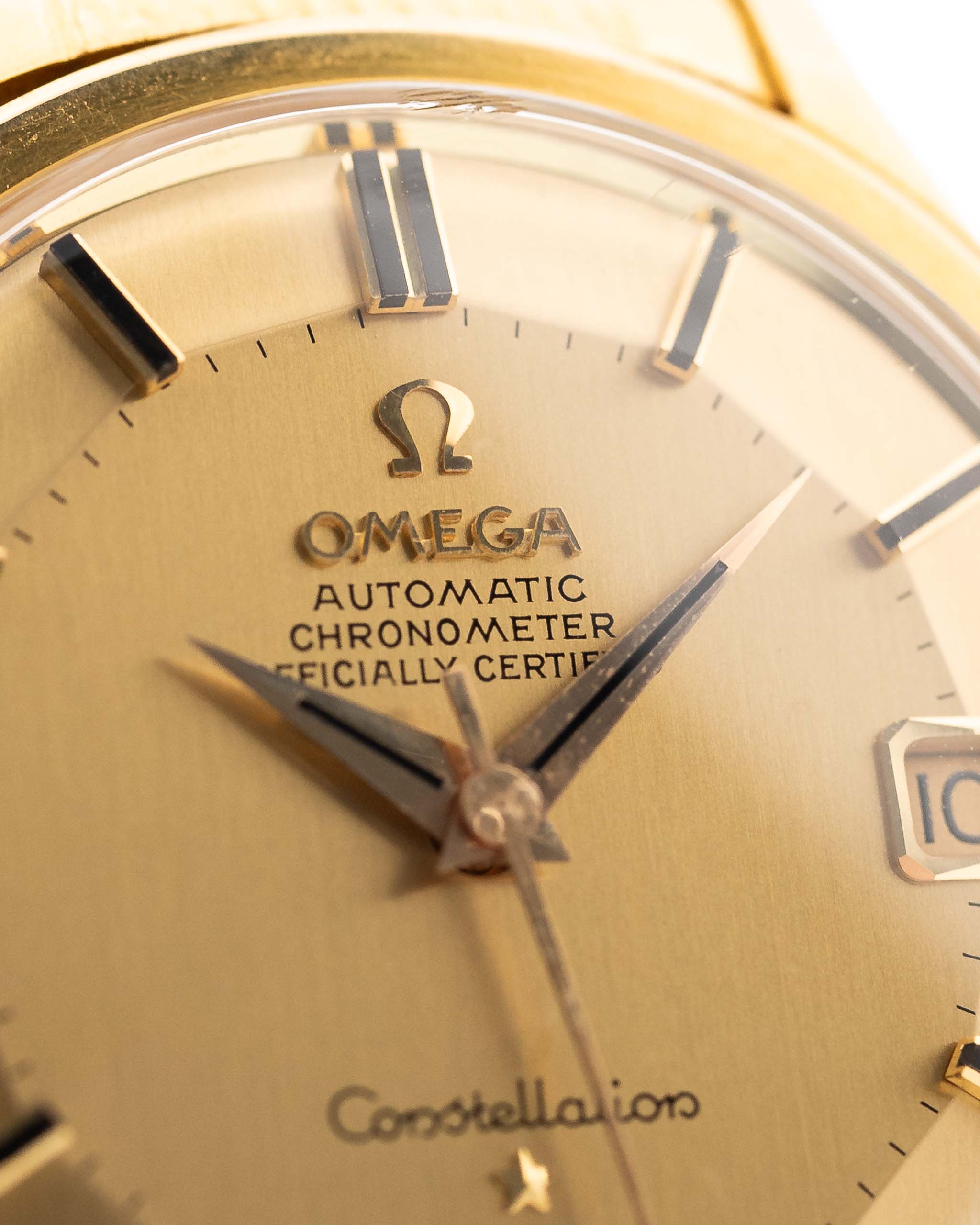 Le design de la Constellation est un régal pour les yeux, quelles que soient les décennies et les références, mais les années 50 ont une influence toute particulière sur le cœur de nos collectionneurs : le cadran doré en forme de tarte, les index en forme de flèche et le bracelet D'Agosto en 18 carats font tout simplement battre notre cœur plus vite. Commercialisée pour la première fois en 1952, la Constellation était la réponse d'Omega à la Rolex Datejust.