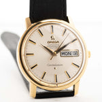 Cette belle et compacte Omega Constellation chronomètre automatique a tout ce que vous attendez d'une montre habillée : Boîtier en or jaune de 35 mm, seconde centrale, cadran superbement dessiné avec index bâtons et incrustations d'onyx. Commercialisée pour la première fois en 1952, la Constellation était la réponse d'Omega à la Rolex Datejust.