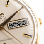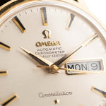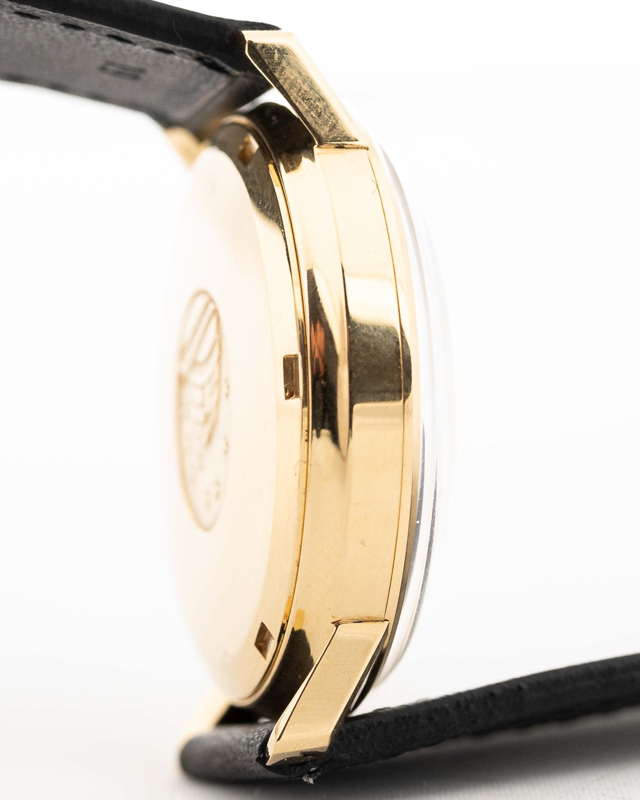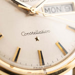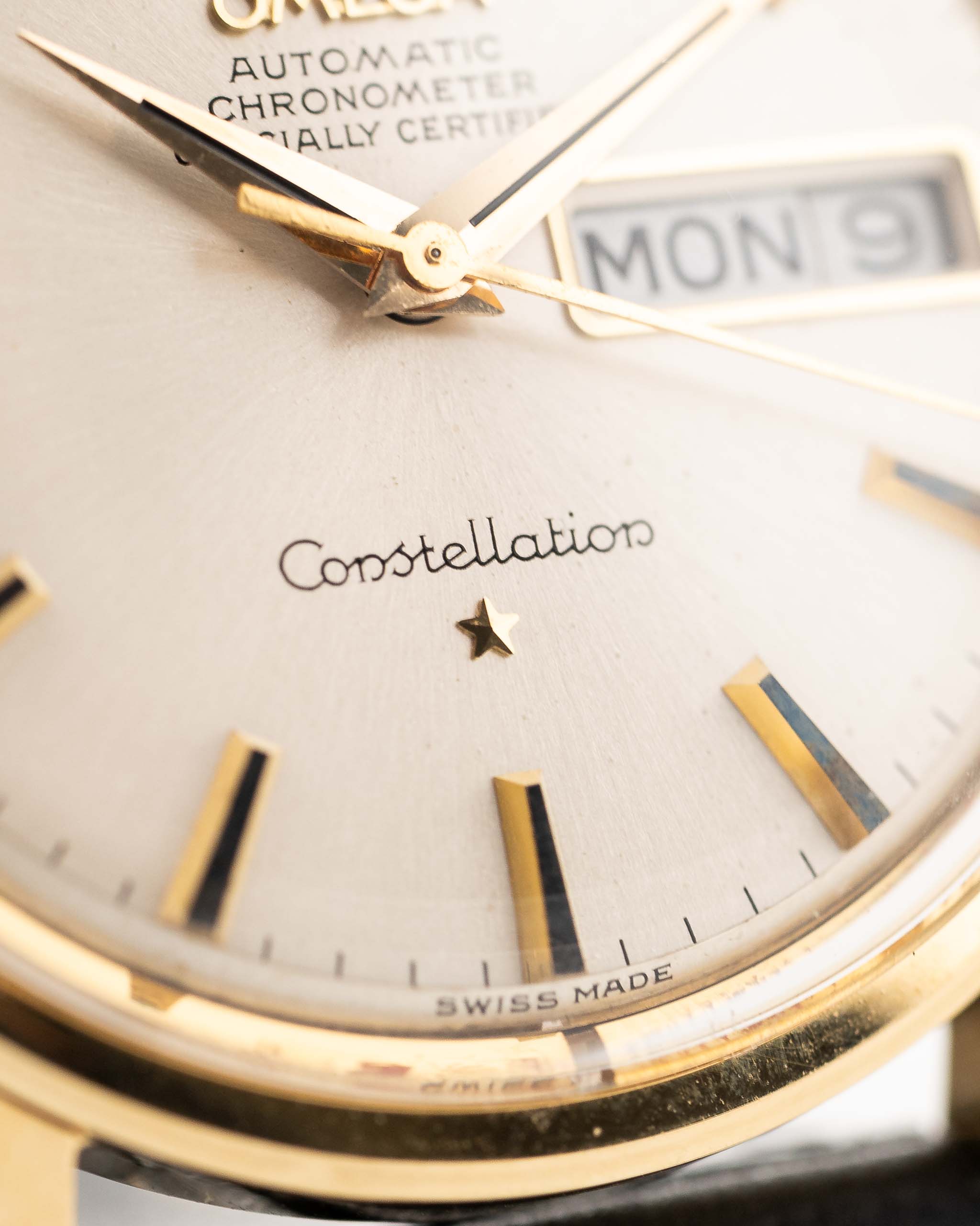 Bien proportionnée, simple et classique, cette Constellation est dotée d'un fond de boîtier vissé, du calibre 751 du chronomètre automatique Omega et de cornes à angle droit.