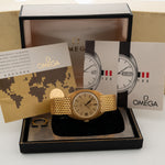 Bien proportionnée, simple et classique, cette Constellation présente un fond de boîtier vissé, le calibre 564 du chronomètre automatique Omega et, cerise sur le gâteau, elle est livrée dans un set complet en état NOS et n'a jamais été portée.