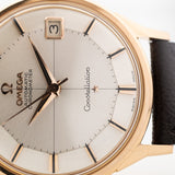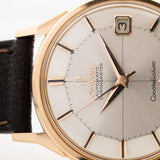 Cette belle et compacte Omega Constellation chronomètre automatique a tout ce que vous recherchez dans une montre habillée : Boîtier en or rose 18 carats de 34,5 mm, seconde centrale, très beau cadran Pie Pan avec réticule et minces index bâtons en or rose avec incrustation d'onyx. Commercialisée pour la première fois en 1952, la Constellation était la réponse d'Omega à la Rolex Datejust.