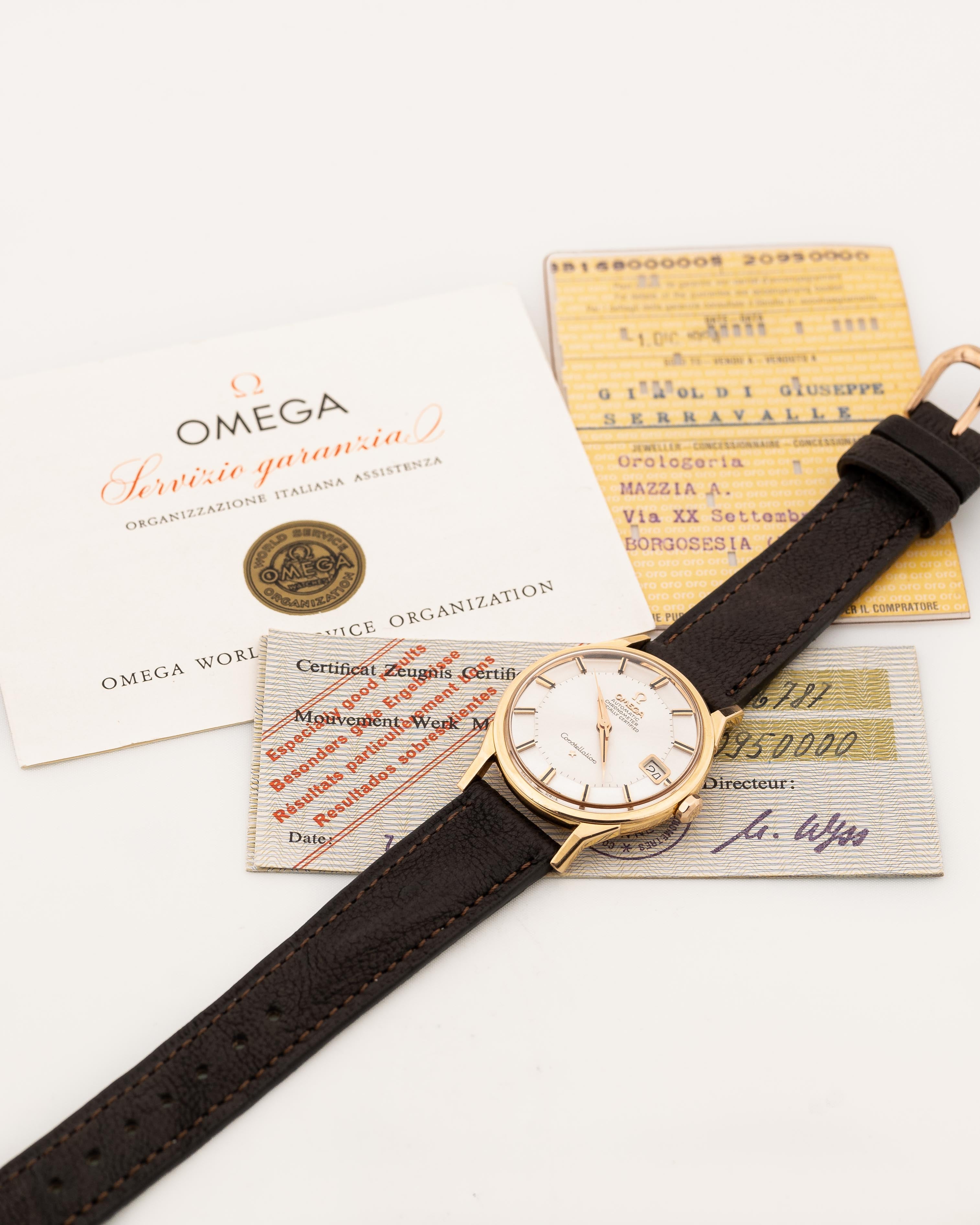 • livré avec le certificat et la carte de garantie d'origine d'Omega datant de 1964 (vendu en Italie)