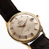 Cette belle et compacte Omega Constellation chronomètre automatique a tout ce que vous recherchez dans une montre habillée : Boîtier plaqué or jaune de 34 mm, seconde centrale, très beau cadran argenté soleillé, rares index bâtons fins et cadran "Pie Pan". Commercialisée pour la première fois en 1952, la Constellation était la réponse d'Omega à la Rolex Datejust.