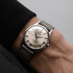 Cette belle et compacte Omega Constellation chronomètre automatique a tout ce que vous recherchez dans une montre habillée : Boîtier en acier inoxydable de 34 mm, seconde centrale, très beau cadran argenté à fond soleil, rares index bâtons fins et cadran "Pie Pan". Commercialisée pour la première fois en 1952, la Constellation était la réponse d'Omega à la Rolex Datejust.