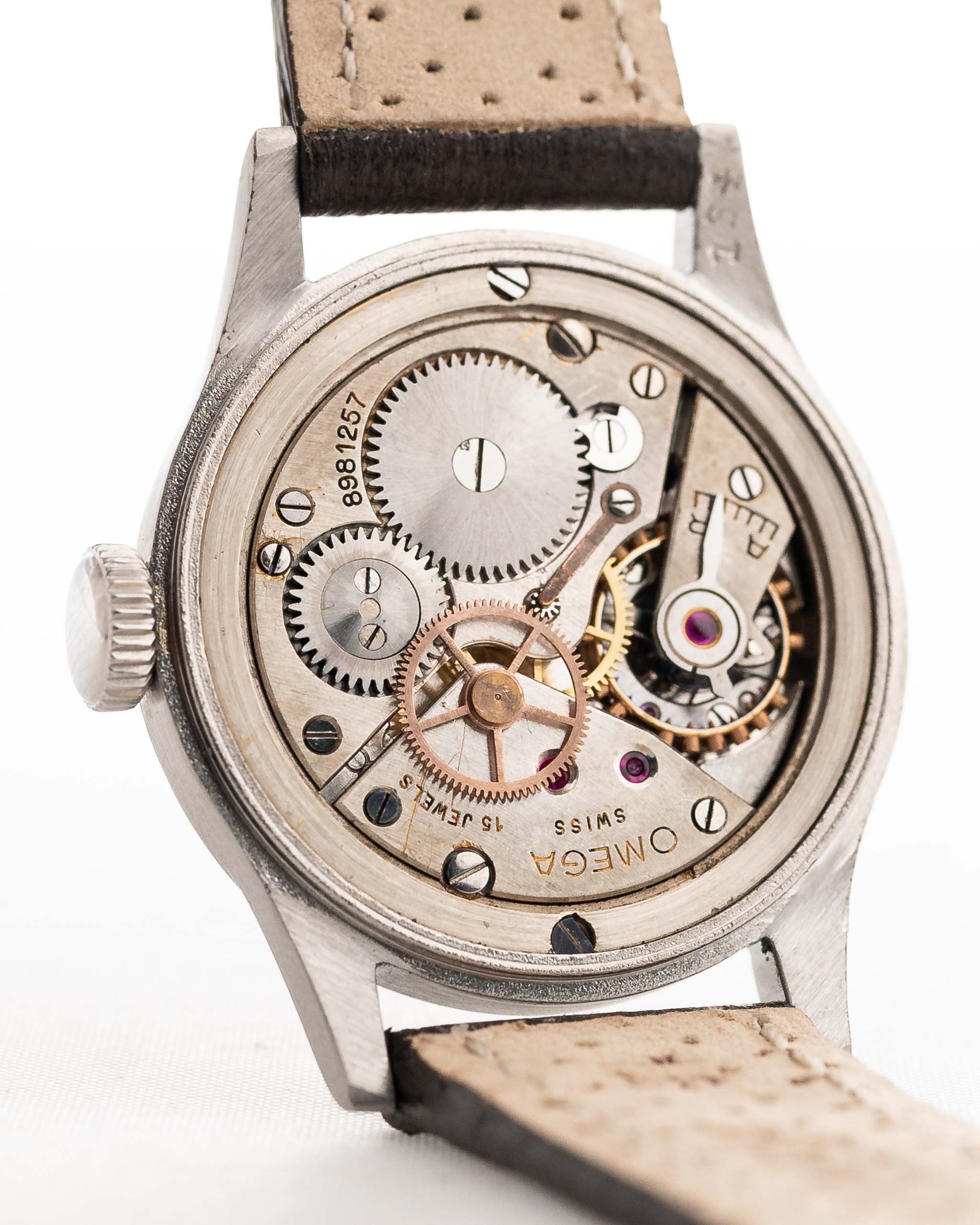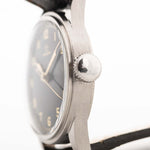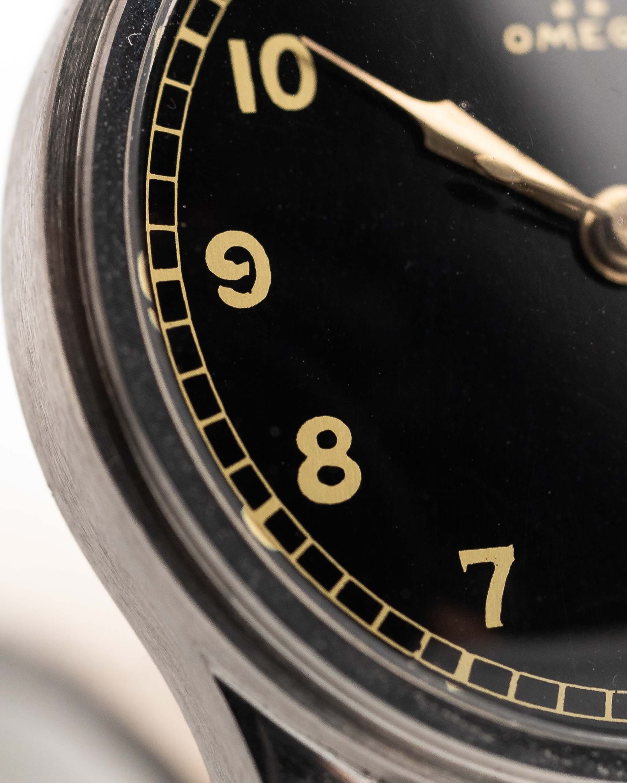 Il est difficile de trouver une Omega des années 30 en bon état, mais il est presque impossible d'en trouver une avec un magnifique cadran noir brillant, des chiffres arabes dorés et des aiguilles seringues assorties.