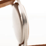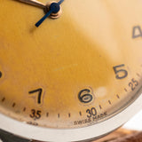Le cadran avec les chiffres arabes et les aiguilles en feuille d'or rose sont en très bon état. Cet exemplaire est dans un état incroyable, le boîtier est net et propre.