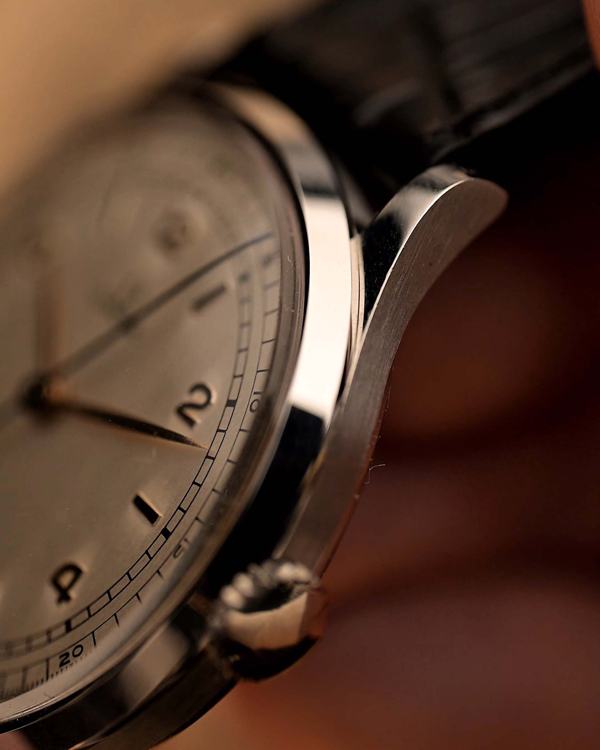 A remarkable survivor from a golden era of watchmaking — this oversized Omega from 1939 stands out not just for its vintage charm, but for its rare proportions and elegant detailing. Housed in a robust 37.5 mm stainless steel case, this early Omega “Jumbo” feels surprisingly modern on the wrist.