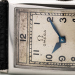 Ce n'est pas la première montre Omega Art Deco Dress Watch dont nous tombons amoureux. Cet exemple est doté d'un énorme boîtier rectangulaire en acier et est rendu encore plus attrayant par ses fantastiques aiguilles glaives bleues et son cadran de couleur crème avec des chiffres arabes Art déco et une seconde subsidiaire. Et la cerise sur le gâteau, c'est l'état quasi neuf de cette montre !