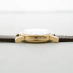 Voici une fascinante et rare Seamaster fabriquée par Omega en 1954. Elle présente un boîtier de 35 mm en or jaune 18 carats avec de très belles cornes épaisses.