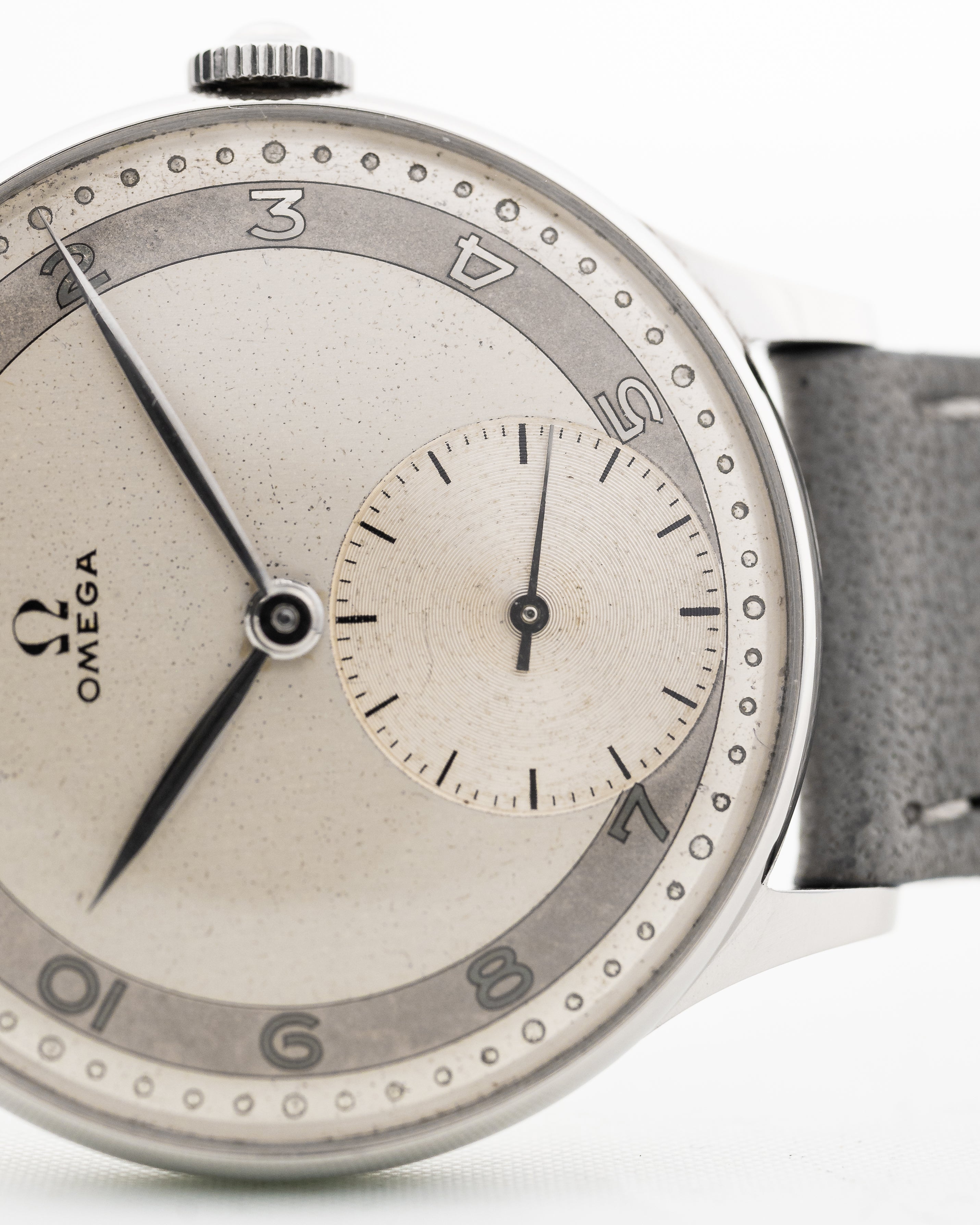 Cet exemple n'est pas seulement beau, il est aussi substantiel. Doté d'un boîtier en acier de 35 mm, de cornes audacieuses et d'un magnifique cadran bicolore blanc/gris avec une énorme seconde secondaire, vous ne pouvez vraiment pas battre cette montre.