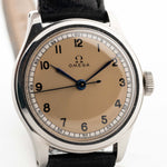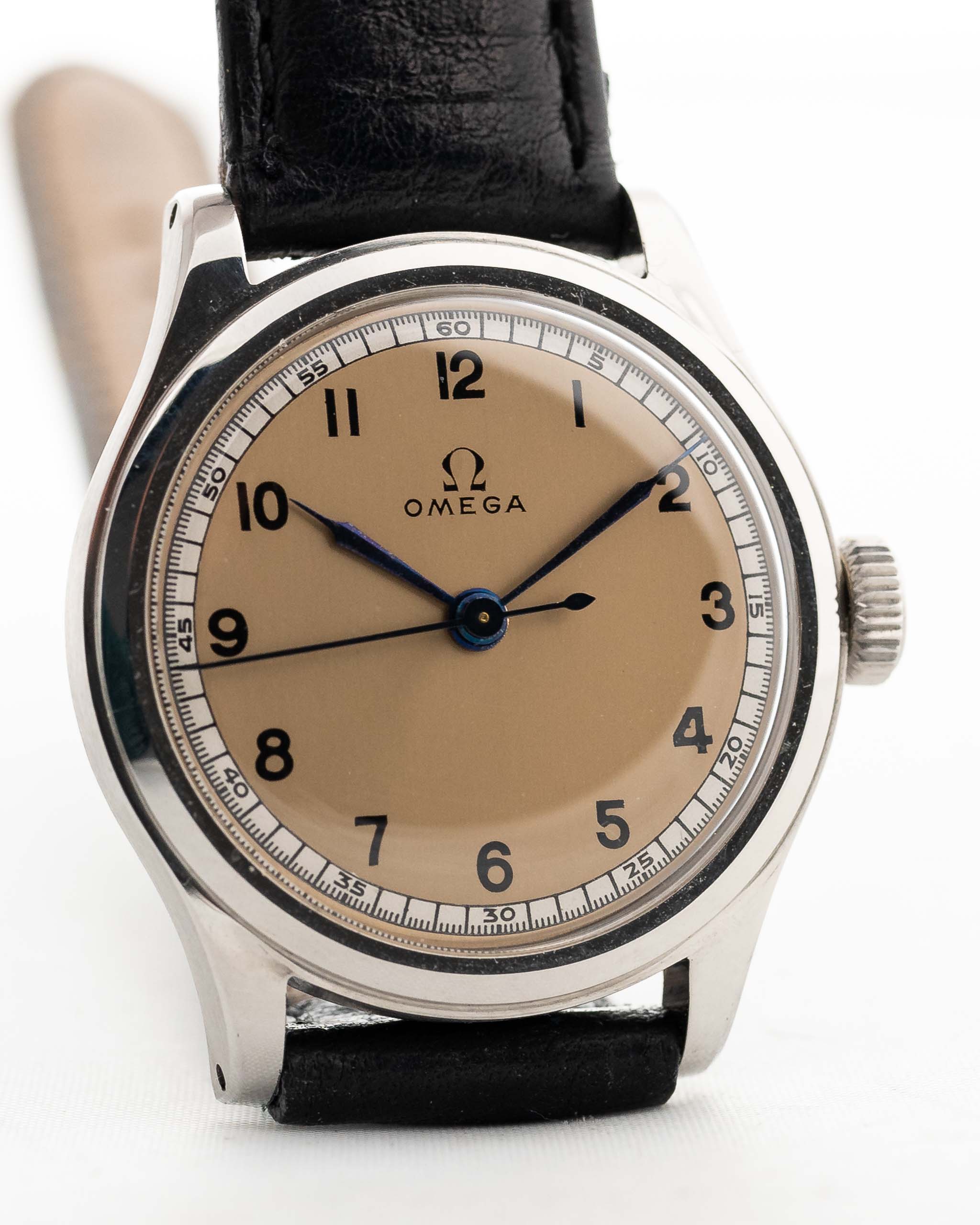 Il est difficile de trouver une Omega des années 30 en bon état, mais il est presque impossible d'en trouver une avec un magnifique cadran bicolore avec des chiffres arabes et des aiguilles seringues en acier bleui.