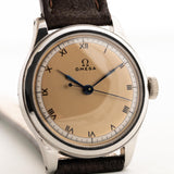 Il est difficile de trouver une Omega des années 40 en bon état, mais il est presque impossible d'en trouver une avec un magnifique cadran bicolore avec des chiffres romains et des aiguilles seringues en acier bleui.