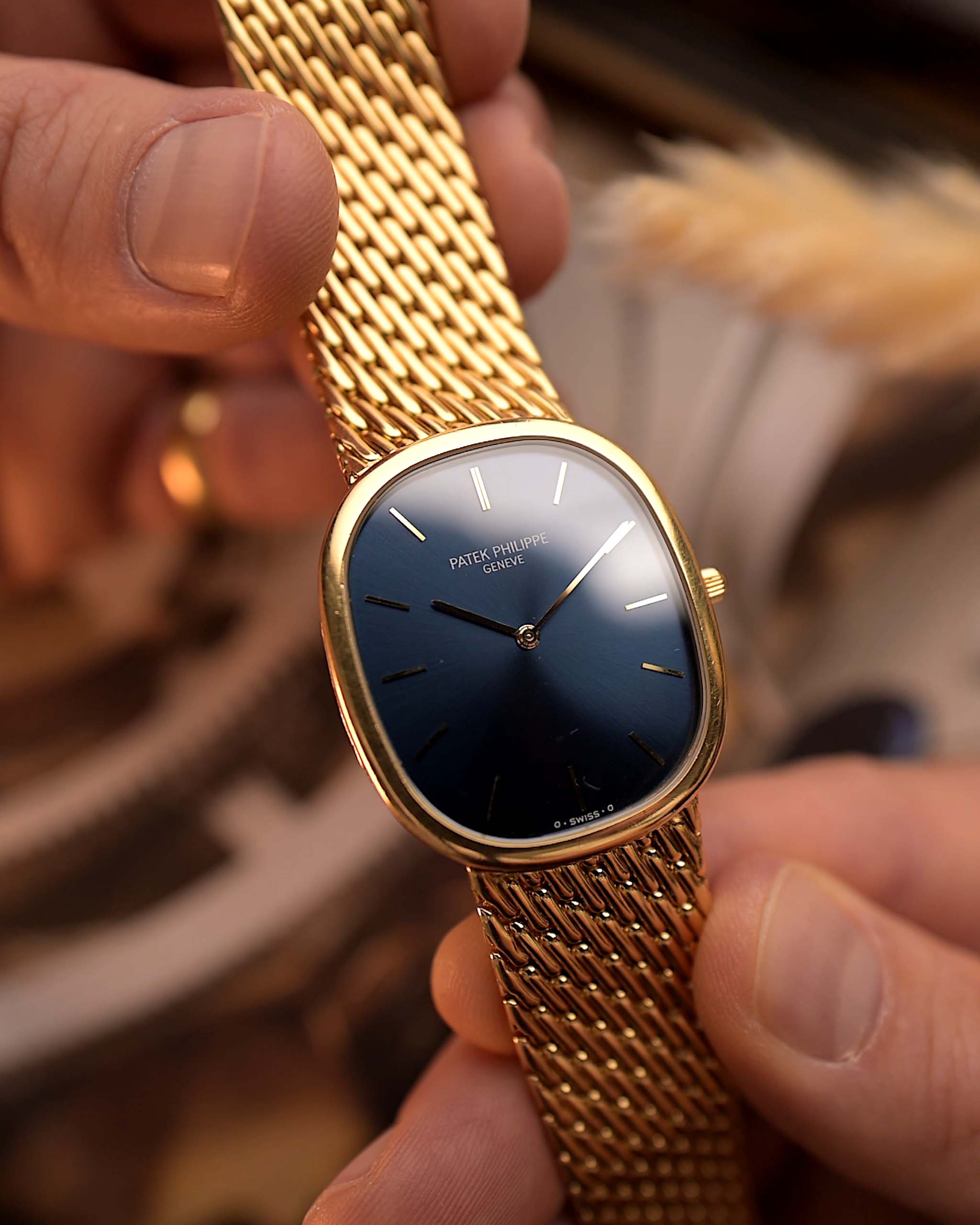 This reference 3738 / 118, also known as the Jumbo Ellipse, elevates the design even further. Its deep blue sunburst sigma dial (MK2 variant) exudes quiet luxury, while the ultra-slim 18k yellow gold case houses the legendary Caliber 240 with a 22k micro-rotor — visible elegance powered by serious mechanical finesse.