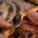 Lancée à l'origine en 1968, l'Ellipse d'or a rompu avec les conventions en rejetant les boîtiers ronds ou carrés traditionnels et en adoptant les proportions dérivées du nombre d'or. Le résultat ? Une silhouette intemporelle appréciée des connaisseurs pour son harmonie, sa simplicité et sa distinction.