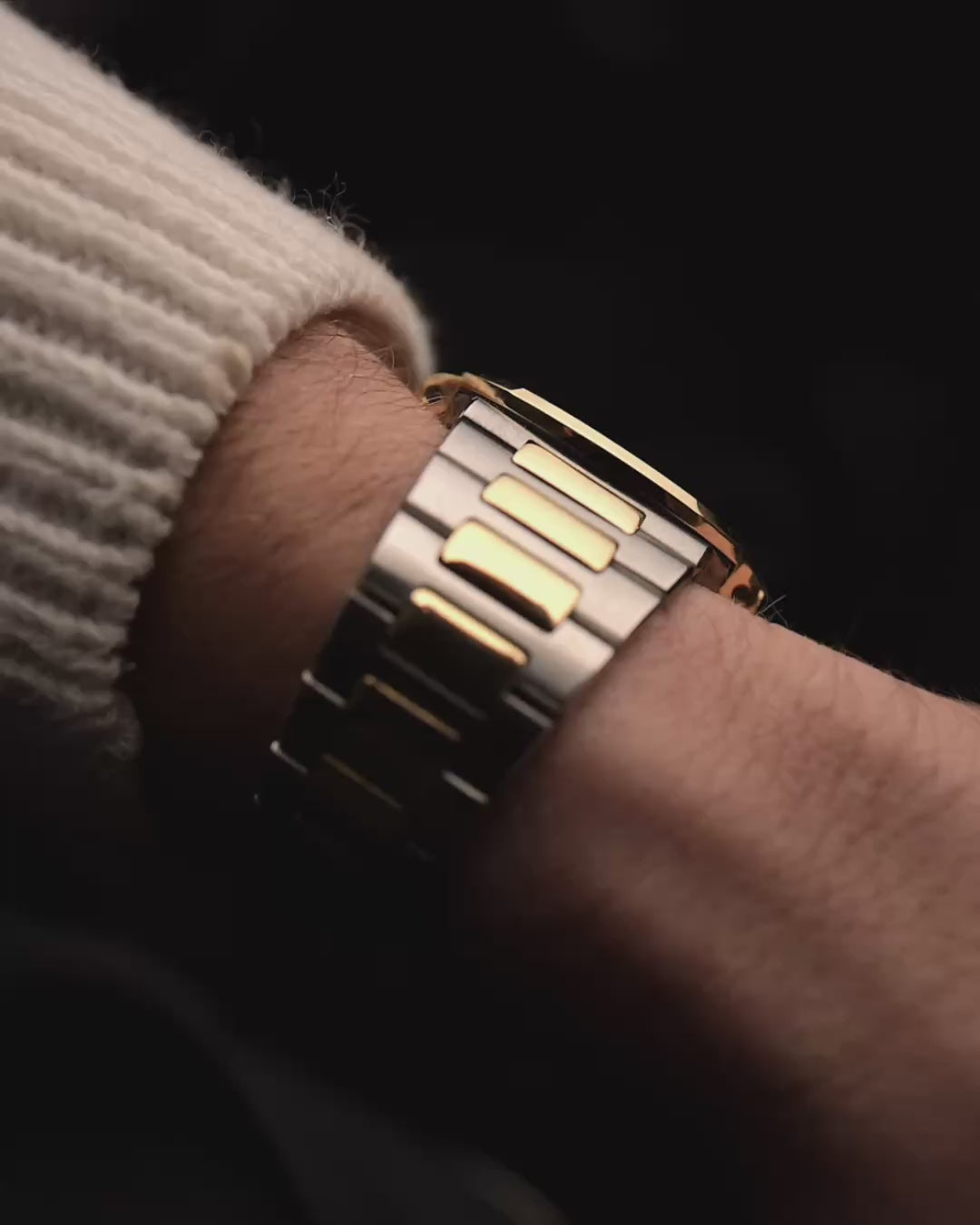 Le cadran sigma doré nervuré est impeccable, encadré par la lunette octogonale arrondie caractéristique et complété par un bracelet bicolore intégré pour un confort exceptionnel. À l'intérieur, le calibre automatique ultra-fin 330 SC combine précision et profil mince.