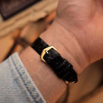 - le bracelet original en cuir noir de Patek Philippe présente quelques signes d'utilisation, mais il est encore portable