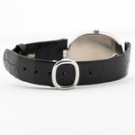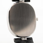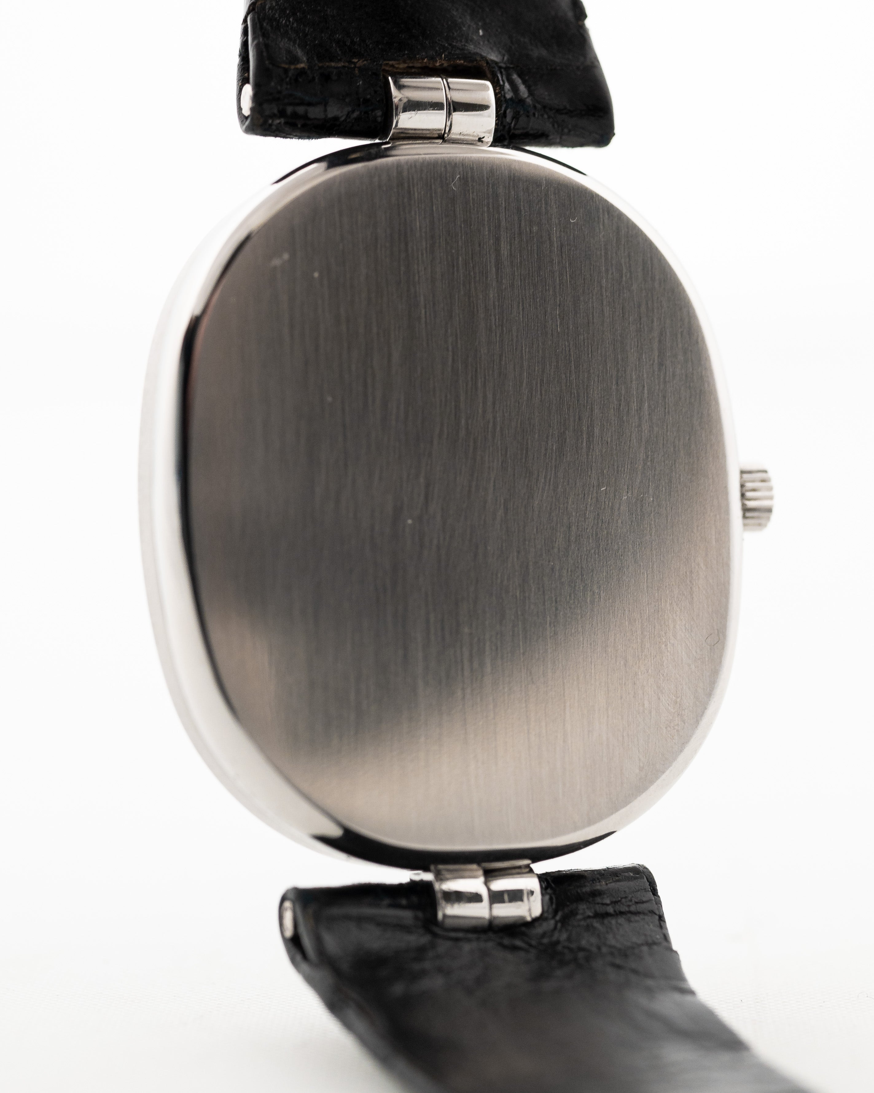L'esthétique minimaliste du boîtier de forme ovale avec des index et des aiguilles simples fait partie de la collection de la société depuis 1968.