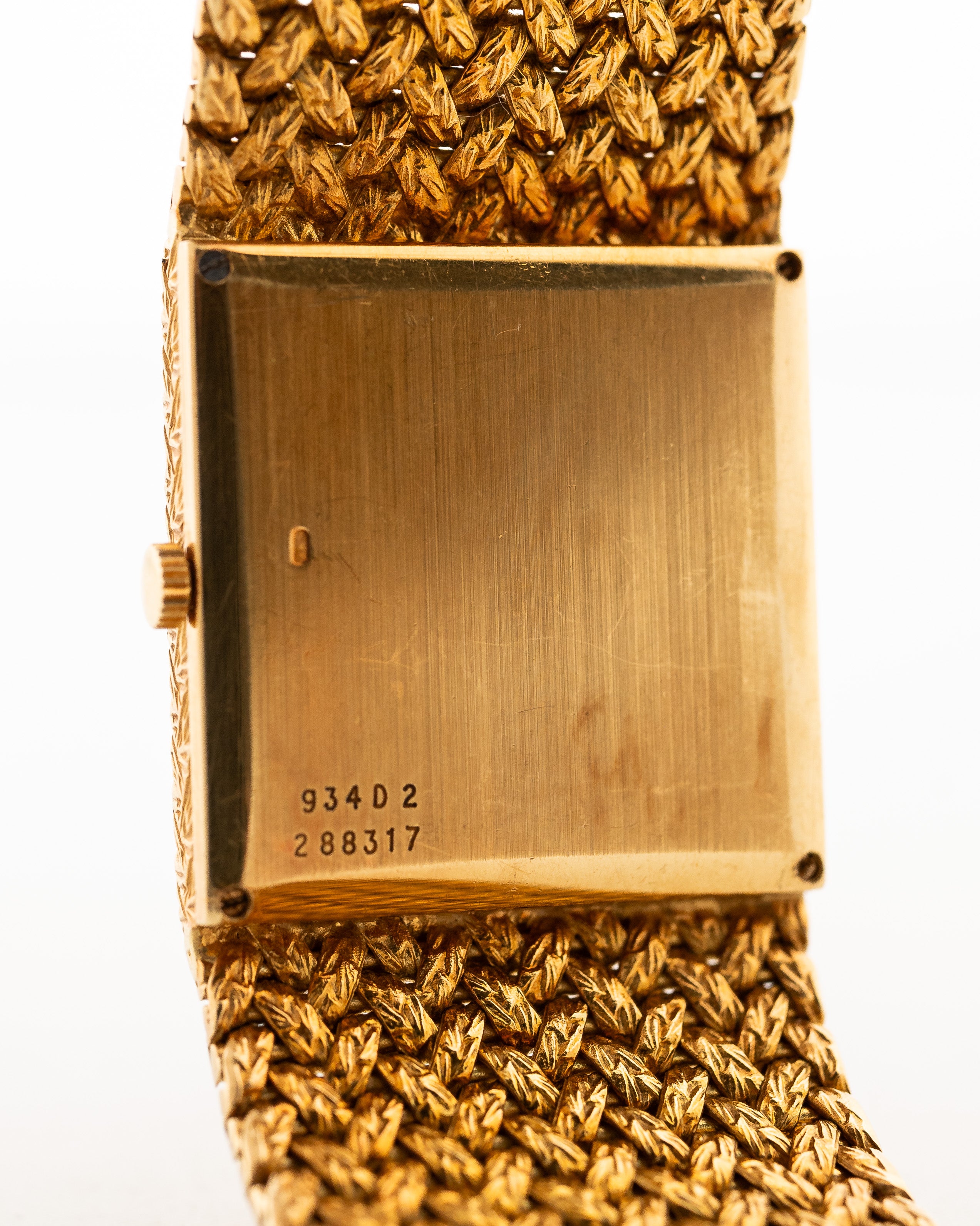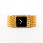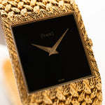 Cette Piaget nous a coupé le souffle dès le premier regard. Ces formes géométriques combinées au bracelet tissé en or jaune 18 carats, au cadran en onyx, à l'aiguille alpha et au logo classique de Piaget sont de véritables œuvres d'art.