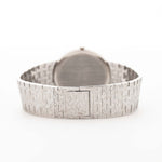 Le cadran en or blanc est en parfait état et la forme ronde du boîtier avec les finitions en écorce sur la lunette et le bracelet est une véritable pièce d'art unique.