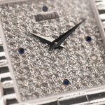 Cette rare Réf. 80131 G2 capture l'esthétique unique de Polo avec ses lignes géométriques épurées, son bracelet en or blanc 18 carats entièrement intégré et son éblouissant cadran en pavé de diamants d'usine rehaussé de quatre saphirs aux points cardinaux. Le résultat est une pièce qui est à la fois une création de haute joaillerie et une icône du design des années 1980.