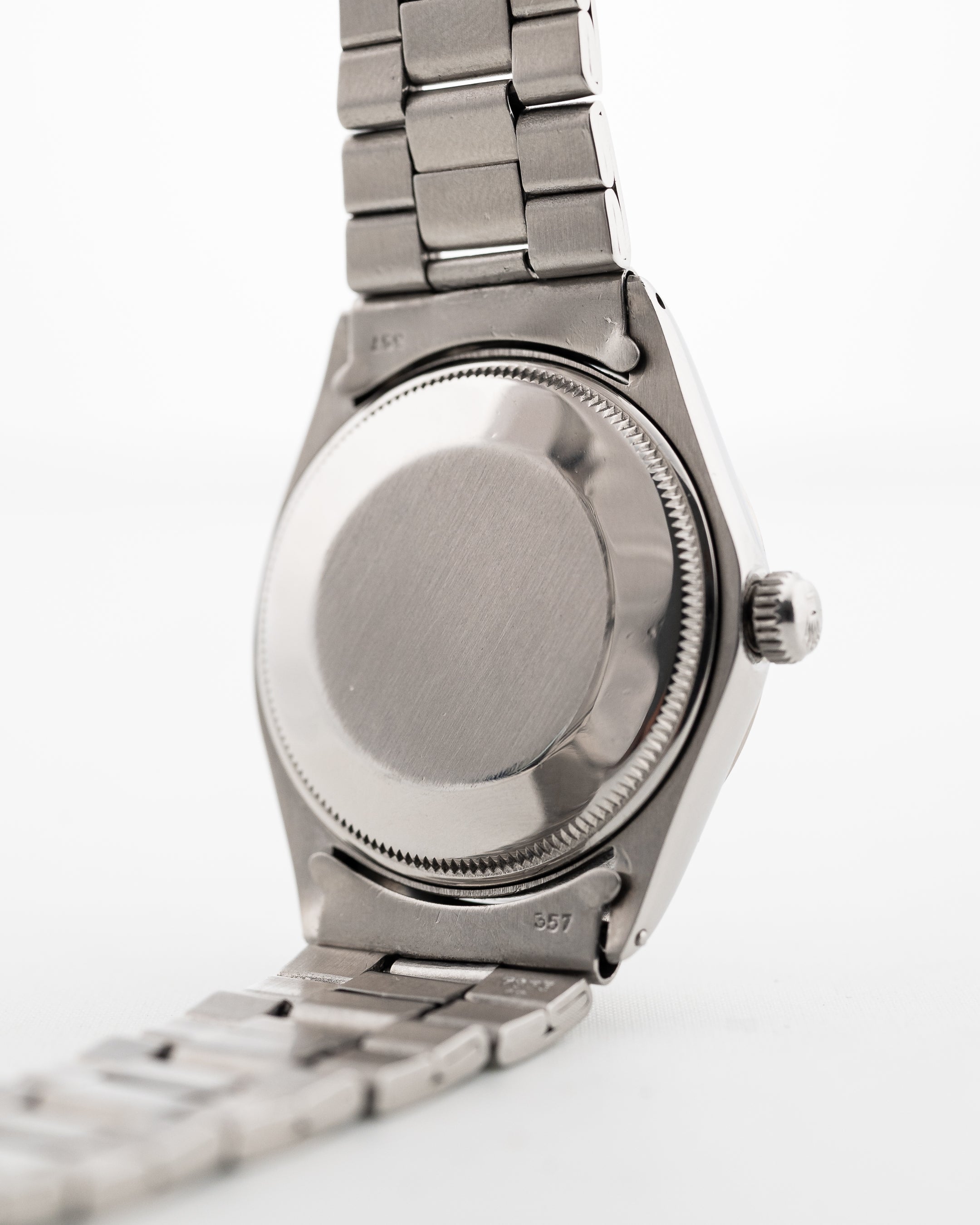L'Air-King est l'un des derniers modèles méconnus de Rolex et possède tout le style classique que l'on peut attendre de la famille Oyster Perpetual. Cette référence a fait de la simplicité son atout - dans ce cas, le cadran gris lin épuré est accentué par des index appliqués blancs très rares pour une lisibilité claire et le large combiné à lattes ajoute un look général élégant.