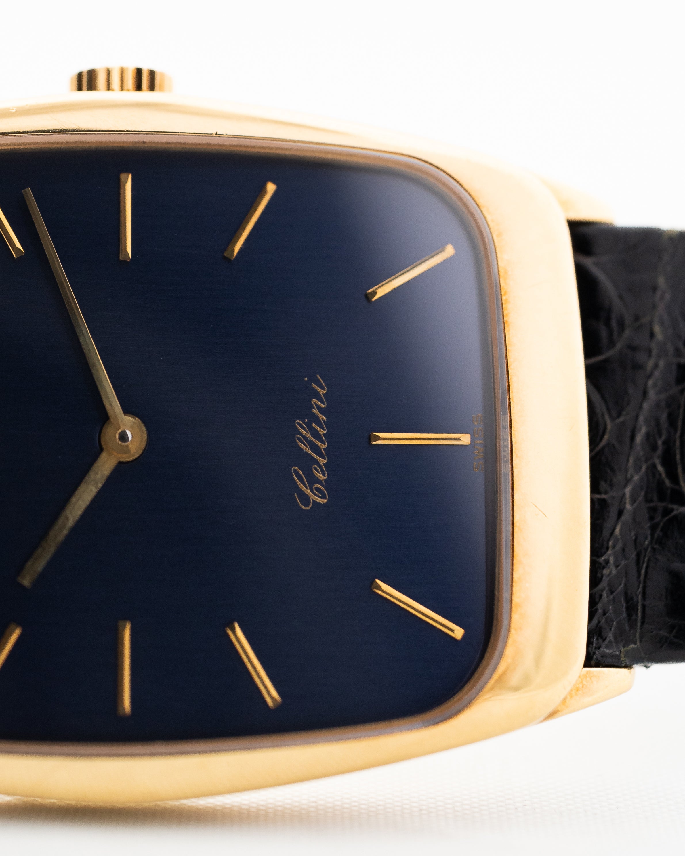 La couleur très rare du cadran est un bleu profond, qui n'était pas très populaire pour les montres habillées produites à cette époque. Ce modèle est très polyvalent, car il peut être porté confortablement dans un cadre décontracté ou en tenue de soirée.