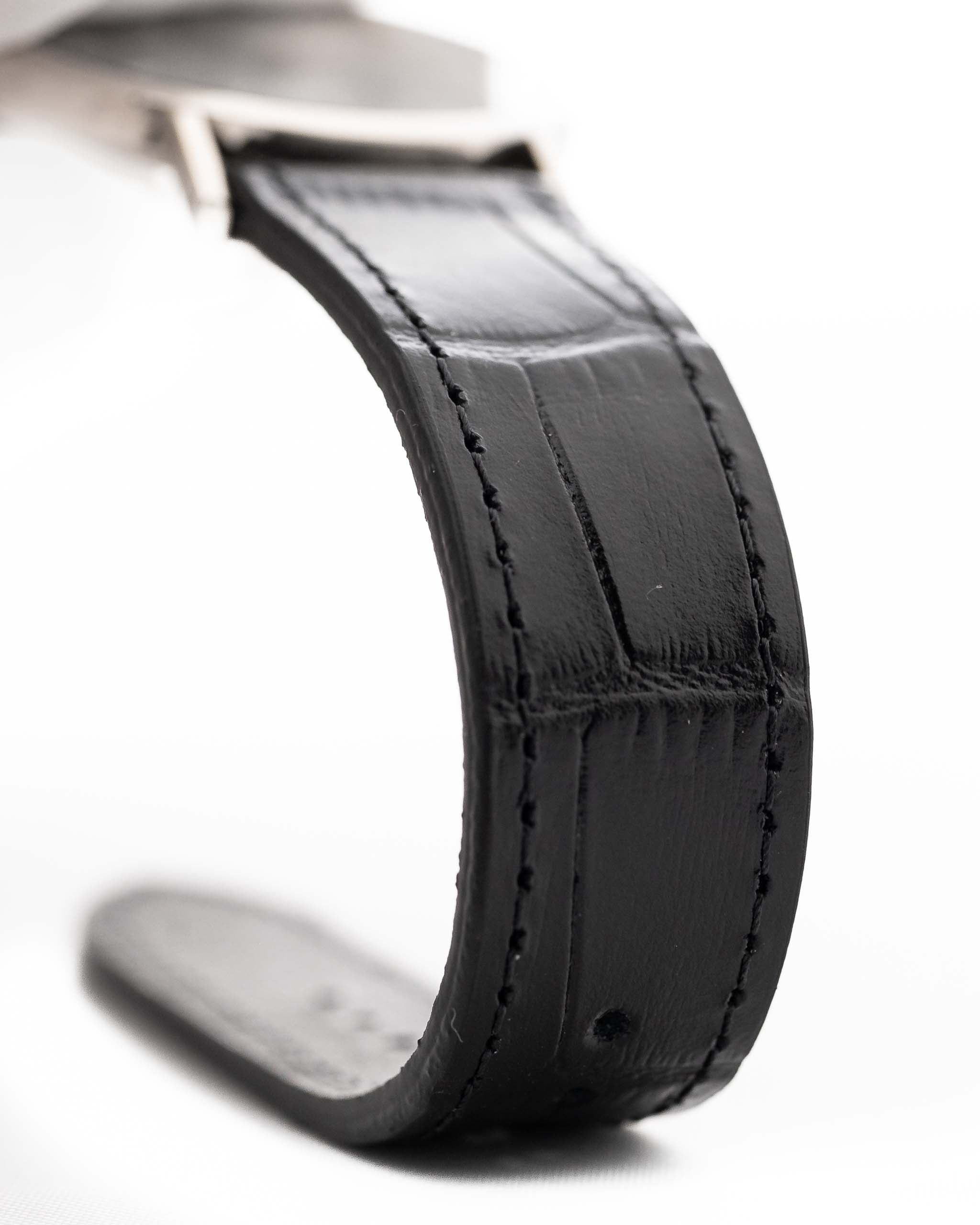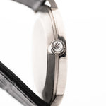 Le cadran bleu soleillé intact est sans défaut - richement vibrant à la lumière directe et parfaitement propre - ce qui rend cette pièce non seulement rare, mais aussi incroyablement bien conservée. Logée dans un boîtier en or blanc de 32 mm de Guillod Gunther SA, elle offre une confiance tranquille et une sophistication durable.