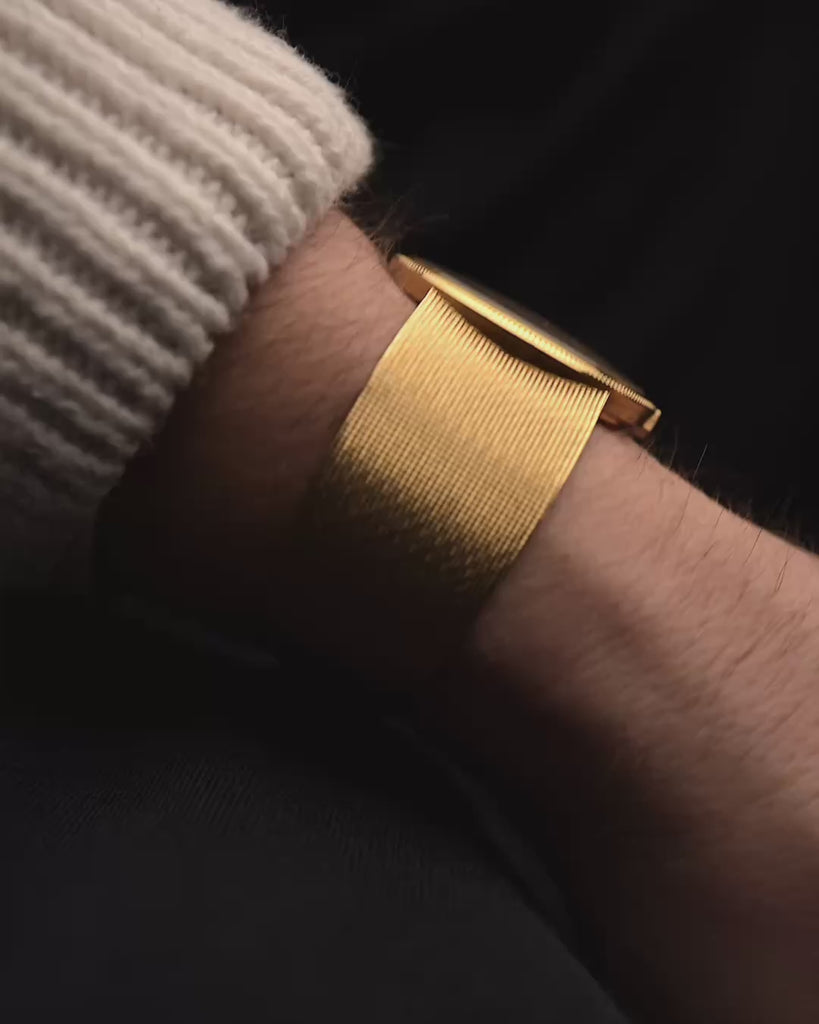 Cette pièce particulière de 1966 se distingue par sa lunette et sa couronne cannelées en or jaune, un boîtier solide aux arêtes vives et un remarquable cadran en forme de moule à tarte dans une rare teinte brun-or.