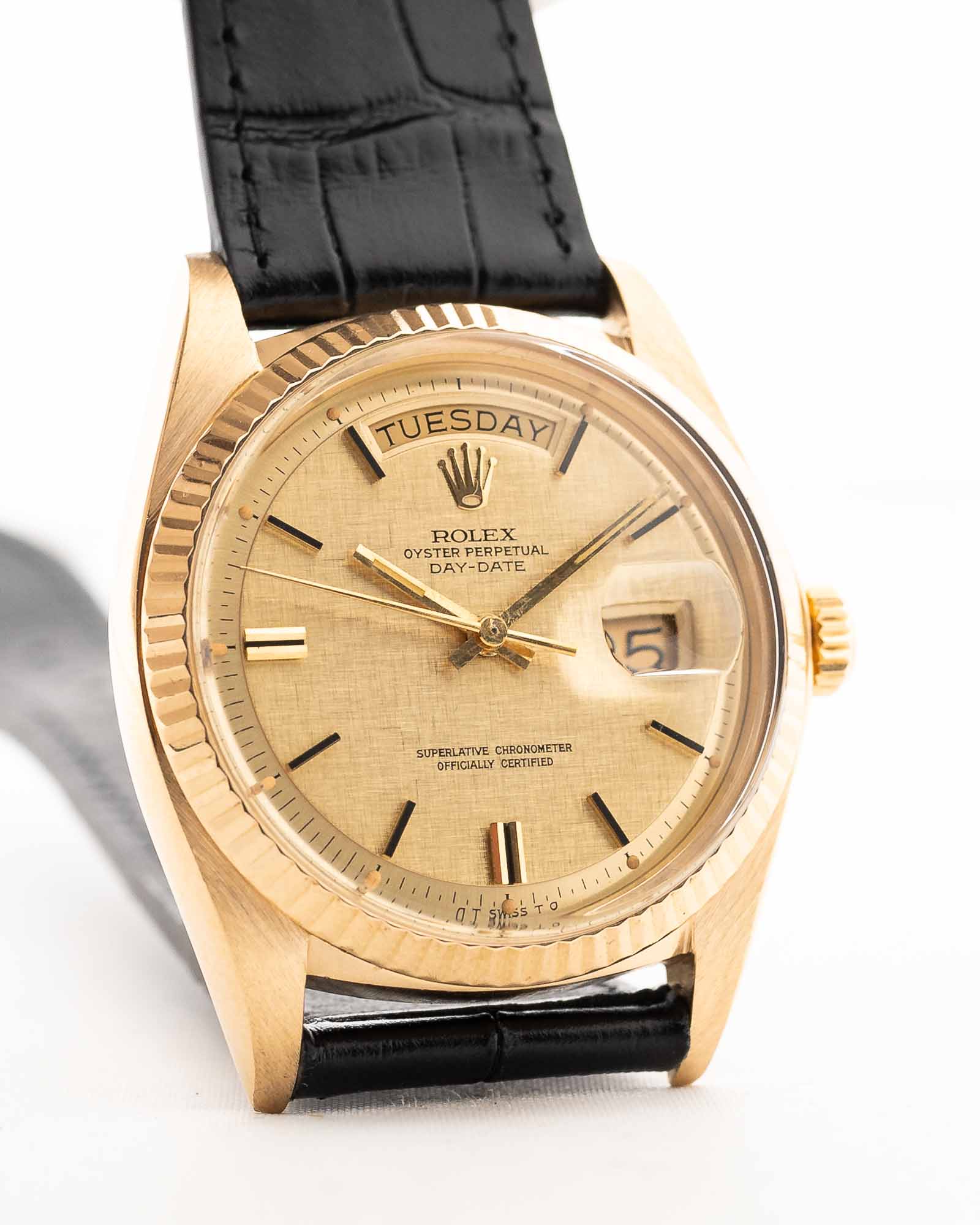 Rolex Day-Date 1803 Linen Dial 1973 - Une icône intemporelle avec un cadran rare et une présence incomparable.