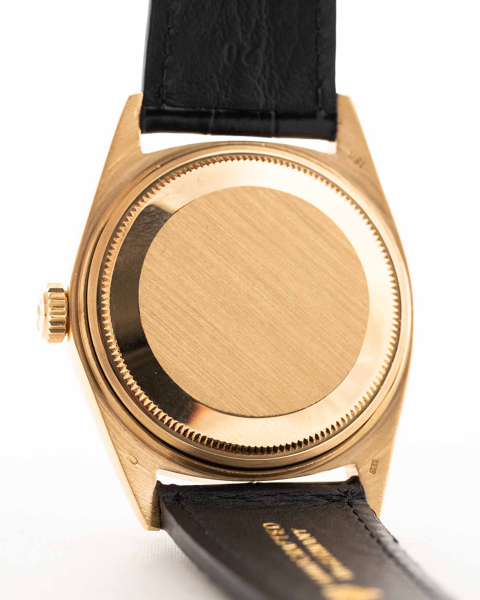 La Rolex Day-Date représente le summum de l'élégance vintage, et cette référence 1803 de 1973 en est un exemple particulièrement captivant. Logé dans un boîtier en or jaune massif 18 carats, ce modèle associe les proportions classiques de la Day-Date à l'un des cadrans les plus recherchés de l'époque : un cadran doré en lin. Sa surface texturée capte magnifiquement la lumière, conférant à la montre un caractère raffiné qui la distingue des configurations standard.
