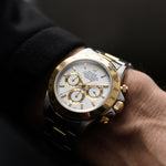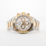 Notre Ref. 16523 avec un cadran blanc, des registres en or et un boîtier deux tons est en parfait état et a été révisée par un professionnel, avec une garantie d'un an.
