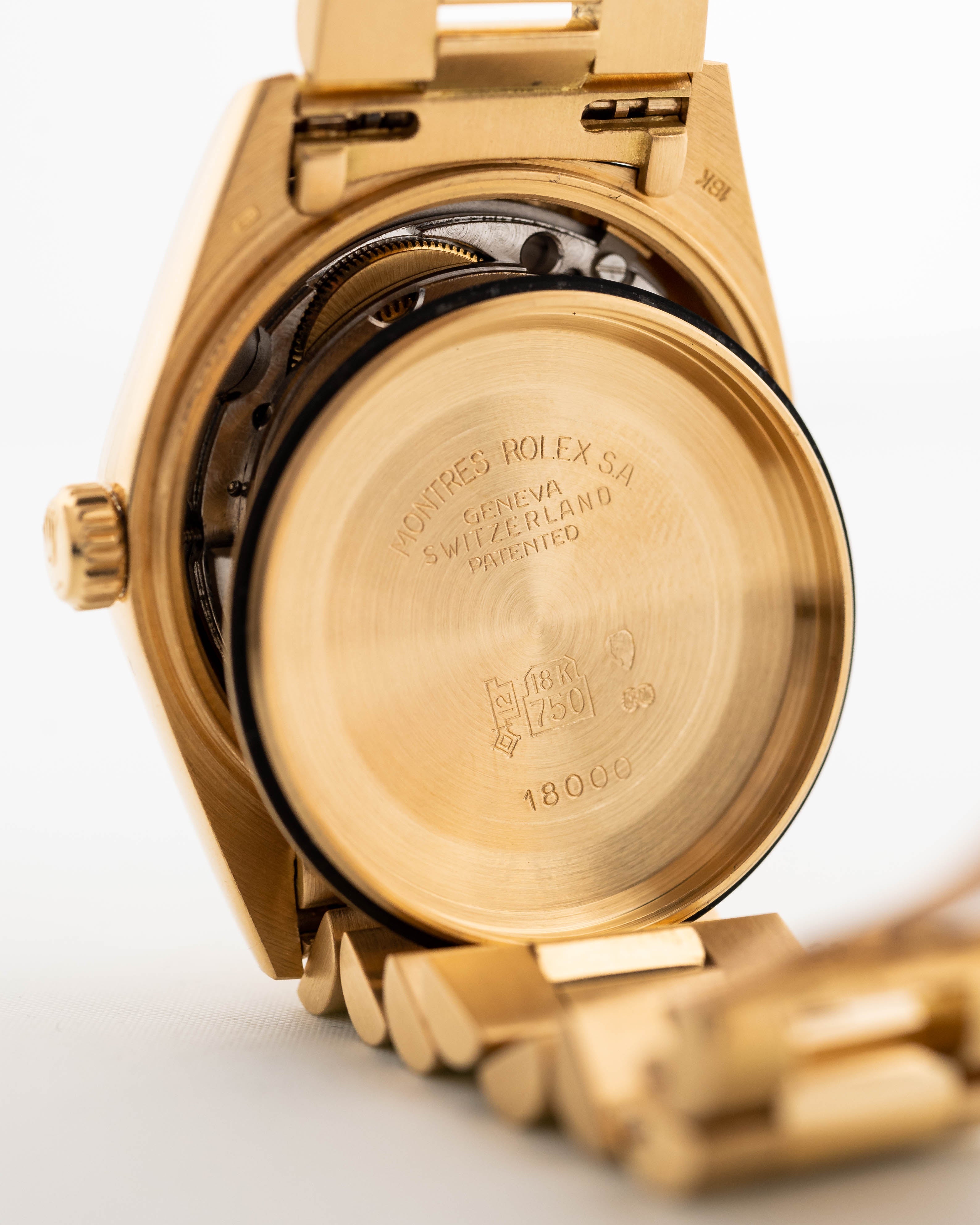 Notre référence est la 18038, qui faisait partie de la nouvelle génération de Day-Dates lancée en 1978, remplaçant à son lancement la célèbre réf. 1803 et actualisant le Président vers un style légèrement plus moderne.