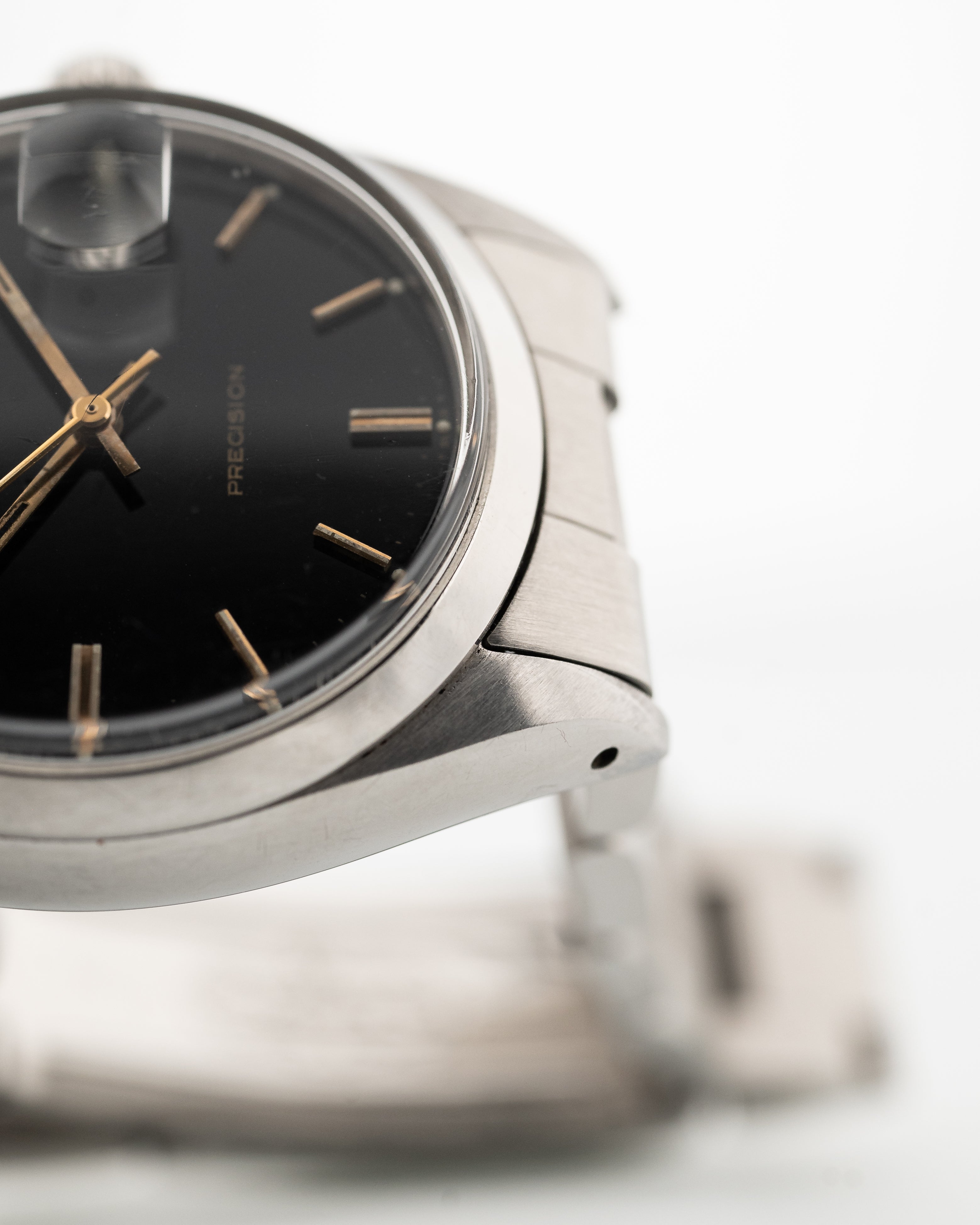 L'Oysterdate Precision de Rolex est une pièce qui passe vraiment inaperçue. Elle a été introduite sous le nom de 6694 au début des années 60 et fabriquée jusqu'à la fin des années 80. D'un point de vue esthétique, cette Rolex est intemporelle et magnifique avec ses 35 mm, mais elle se porte plus grande. Elle a une allure élégante qui semble convenir au court de tennis, à une réunion d'affaires ou à toute autre occasion décontractée.