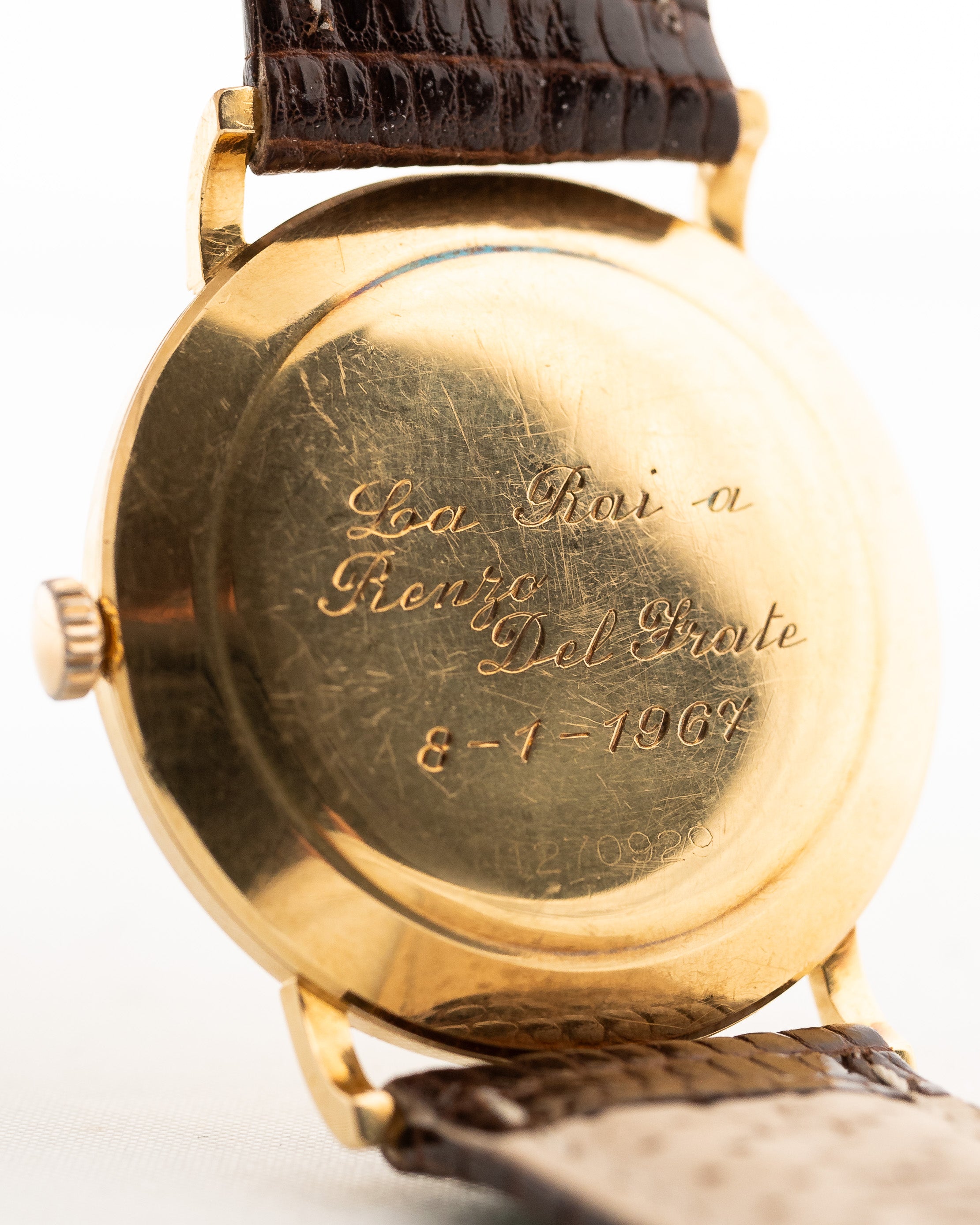 Cette pièce particulière porte une histoire supplémentaire sur le fond du boîtier avec la gravure "La Rai a Renzo Del Frate 8.-1-1967". Malheureusement, nous n'avons pas plus d'informations sur cette gravure, mais il semble qu'il s'agisse d'un nom et qu'elle puisse être facilement polie, si vous le souhaitez.