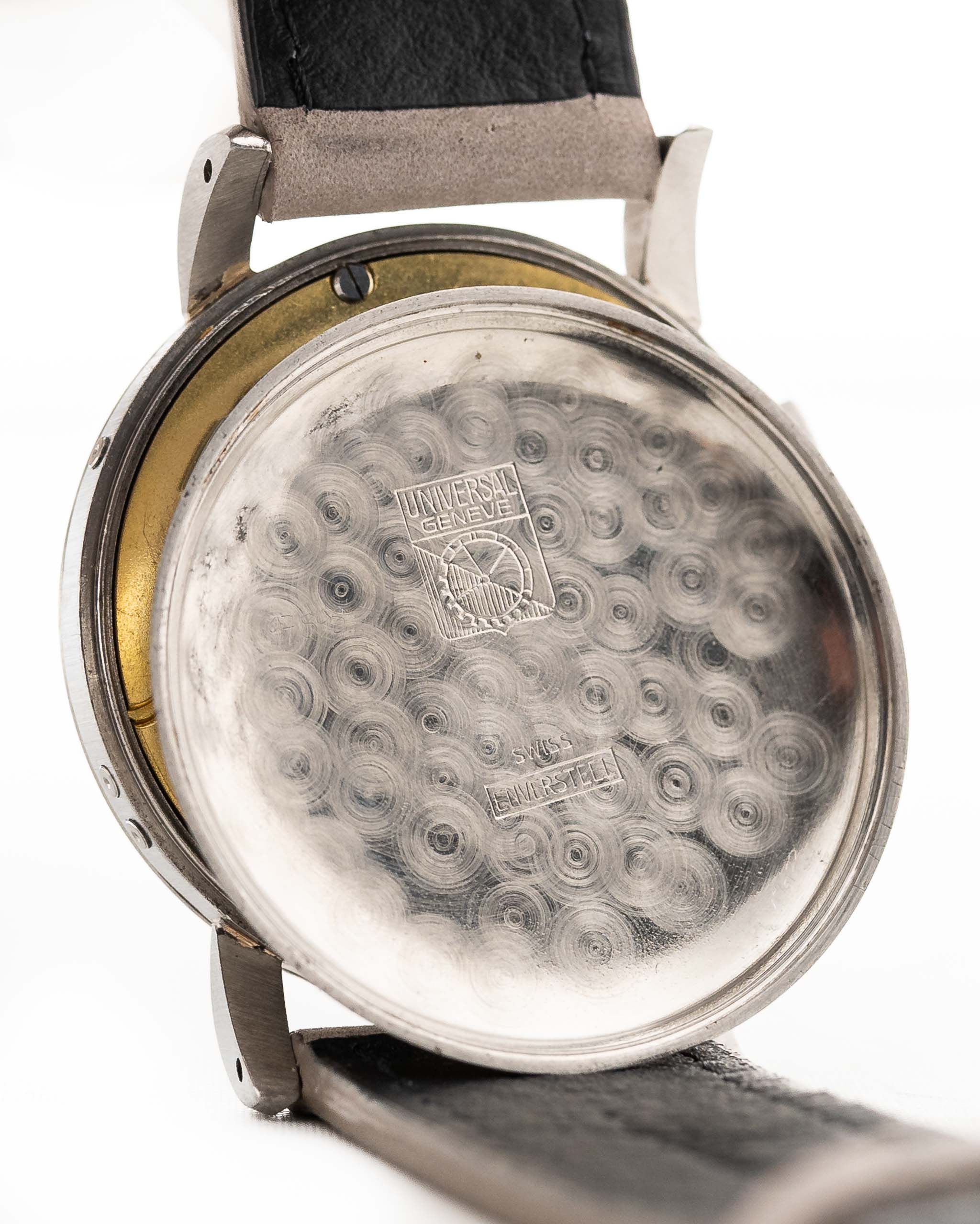 Ce qui rend cet exemplaire vraiment extraordinaire, c'est qu'il se trouve dans un état exceptionnel et qu'il est livré avec sa boîte Universal Genève d'origine, qui porte encore un autocollant de bijoutier de Budapest, en Hongrie - un élément remarquable de sa provenance.