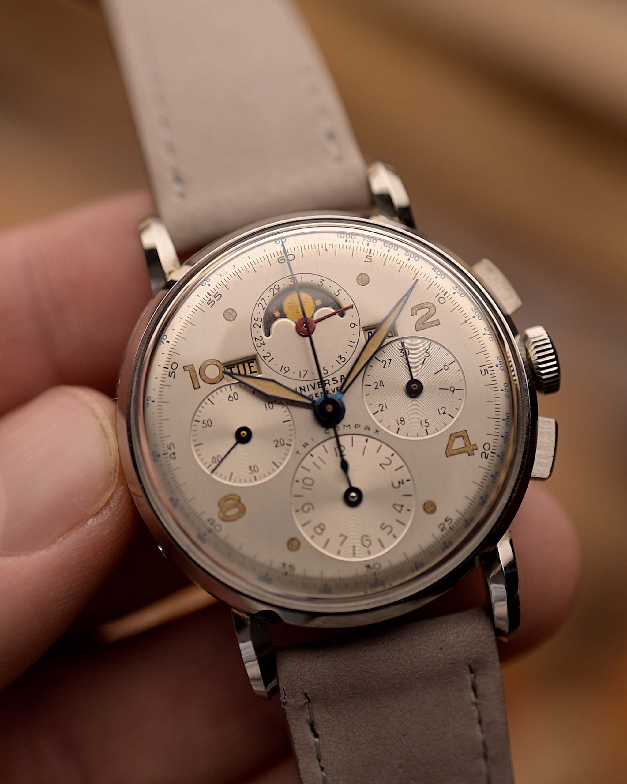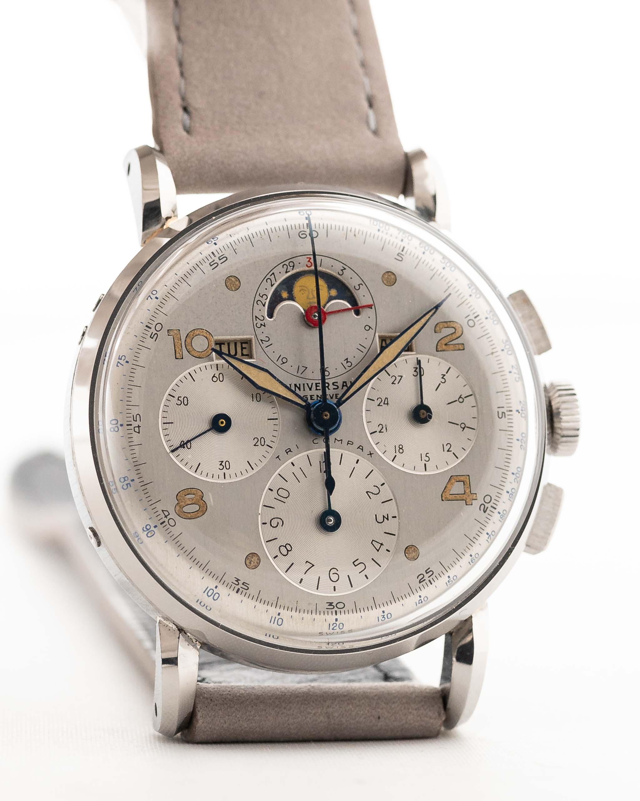 Pour les collectionneurs de Montre Vintage , le nom Universal Genève évoque quelque chose de spécial. Pas de prestige de masse, mais de la pureté. Ce n'est pas le battage médiatique, mais l'héritage. Leurs chronographes légendaires - de la ligne Compax au gracieux Tri-Compax, de l'élégant Aero-Compax au vénéré Uni-Compax - allient l'ingéniosité mécanique à un langage stylistique inimitable. Équilibré. Discret. Iconique.