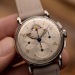 La Universal Genève Tri-Compax est l'une des montres les plus convoitées et les plus importantes d'un point de vue historique dans le domaine de la collection vintage. Cette Réf. 22250 du milieu des années 1940 n'est pas seulement un exemple exceptionnel du modèle - elle démontre parfaitement pourquoi le Tri-Compax a atteint un statut légendaire.