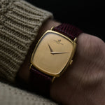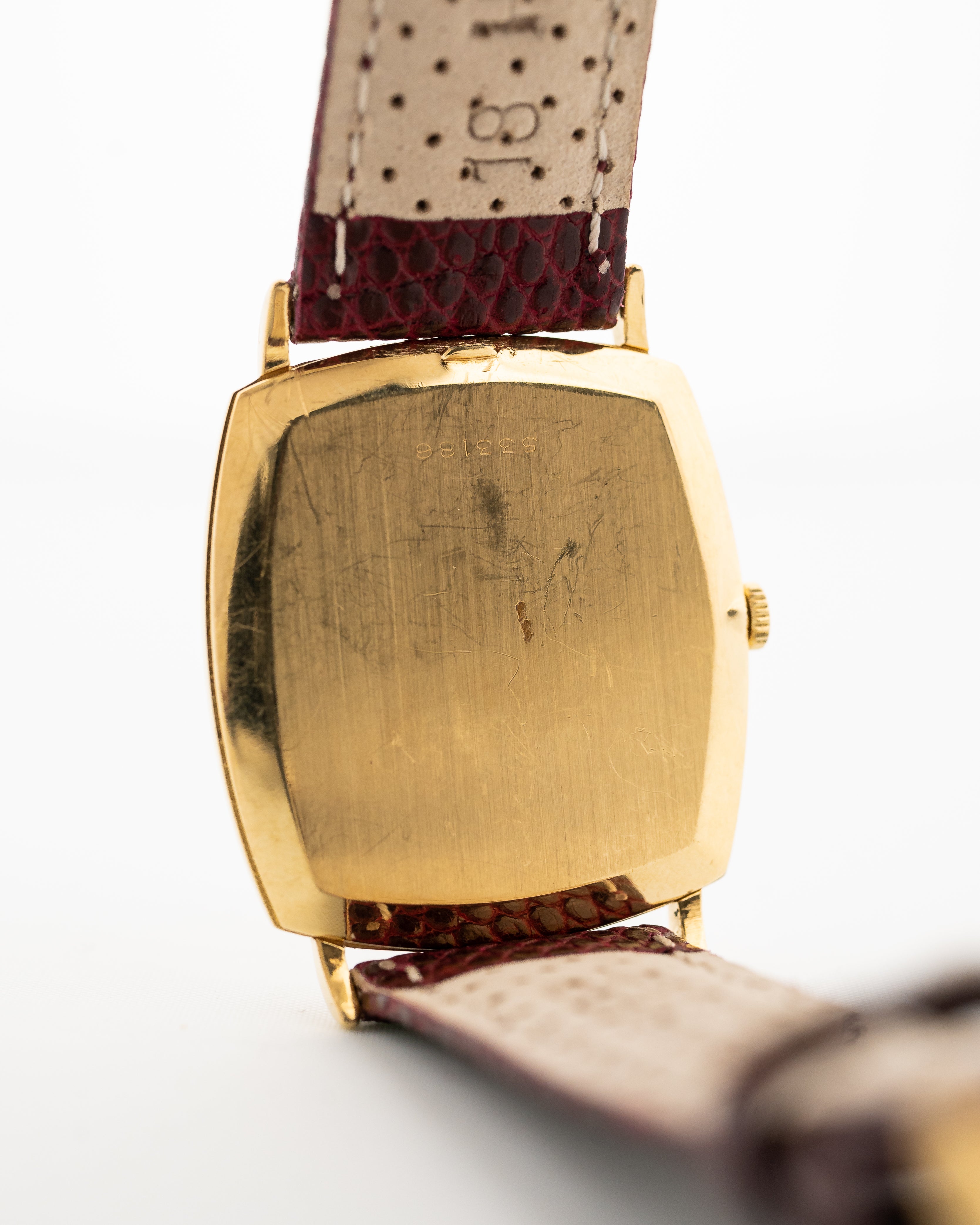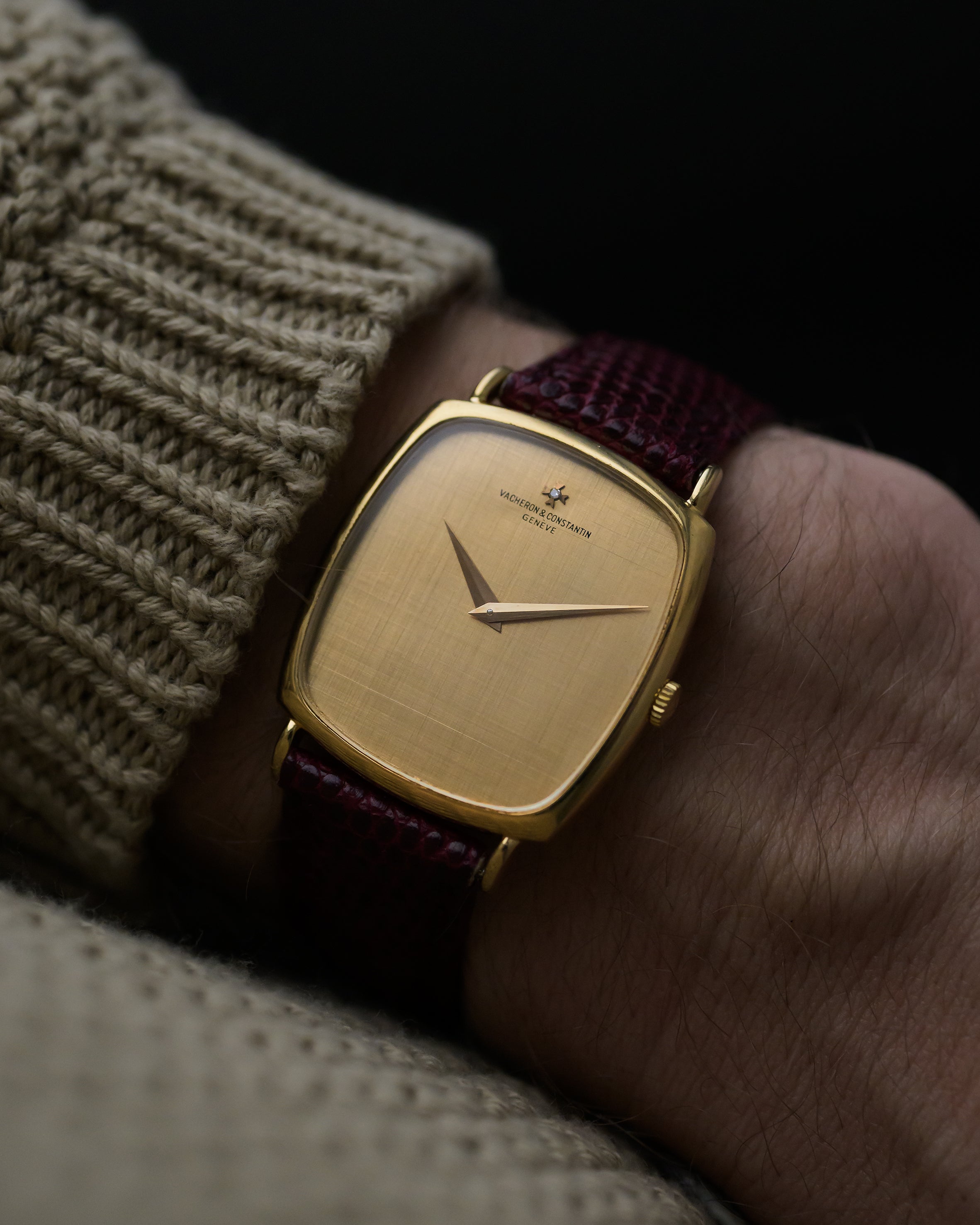 Nous avons ici une montre habillée Vacheron Constantin Rectangulaire en or jaune 18 carats d'une grande beauté, datant des années 1970.