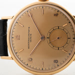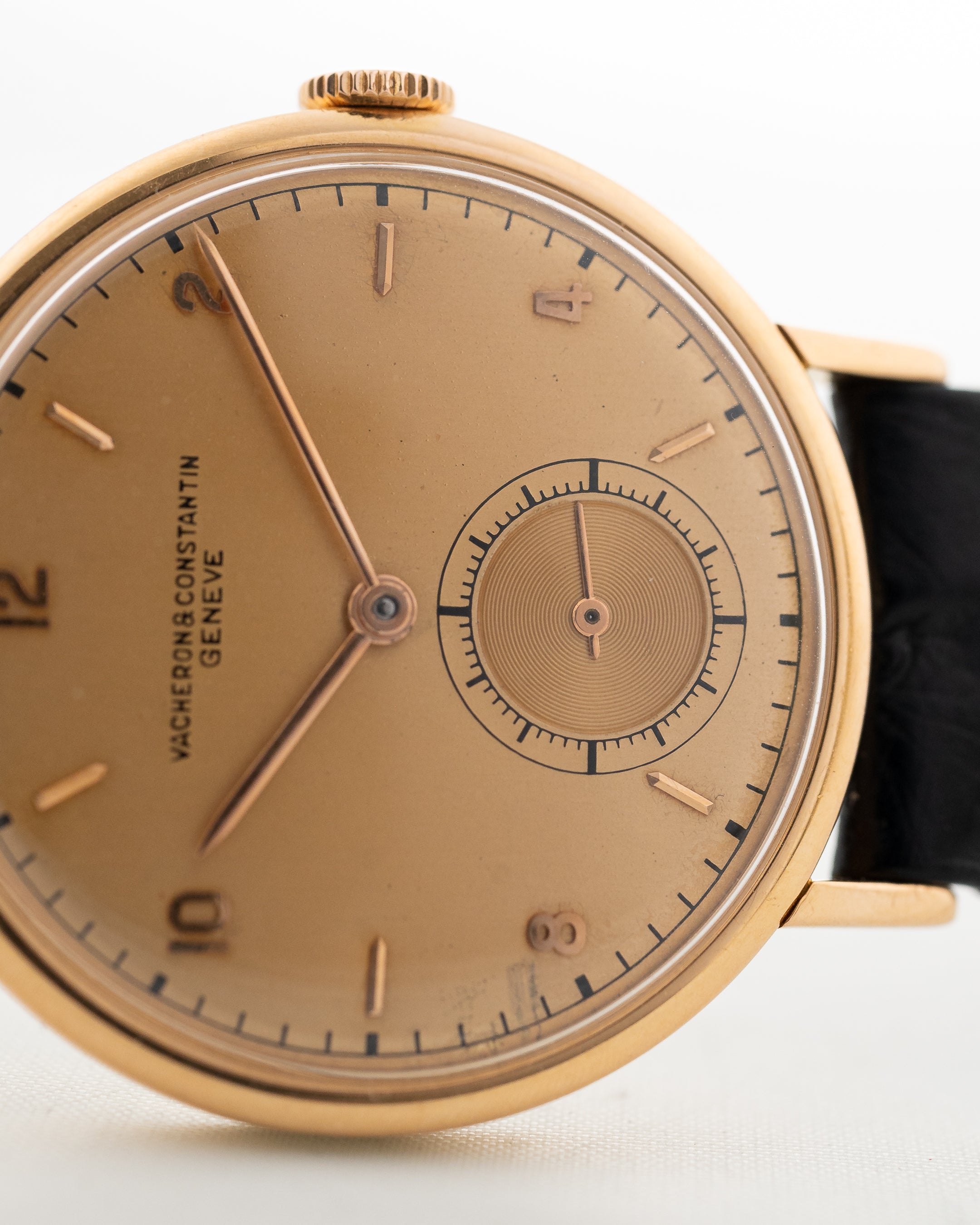 Nous avons ici une montre habillée Vacheron Constantin de 1937 aux finitions magnifiques, avec un cadran étonnamment conçu dans une couleur or rose avec tant de détails qu'il est difficile de tous les mentionner.