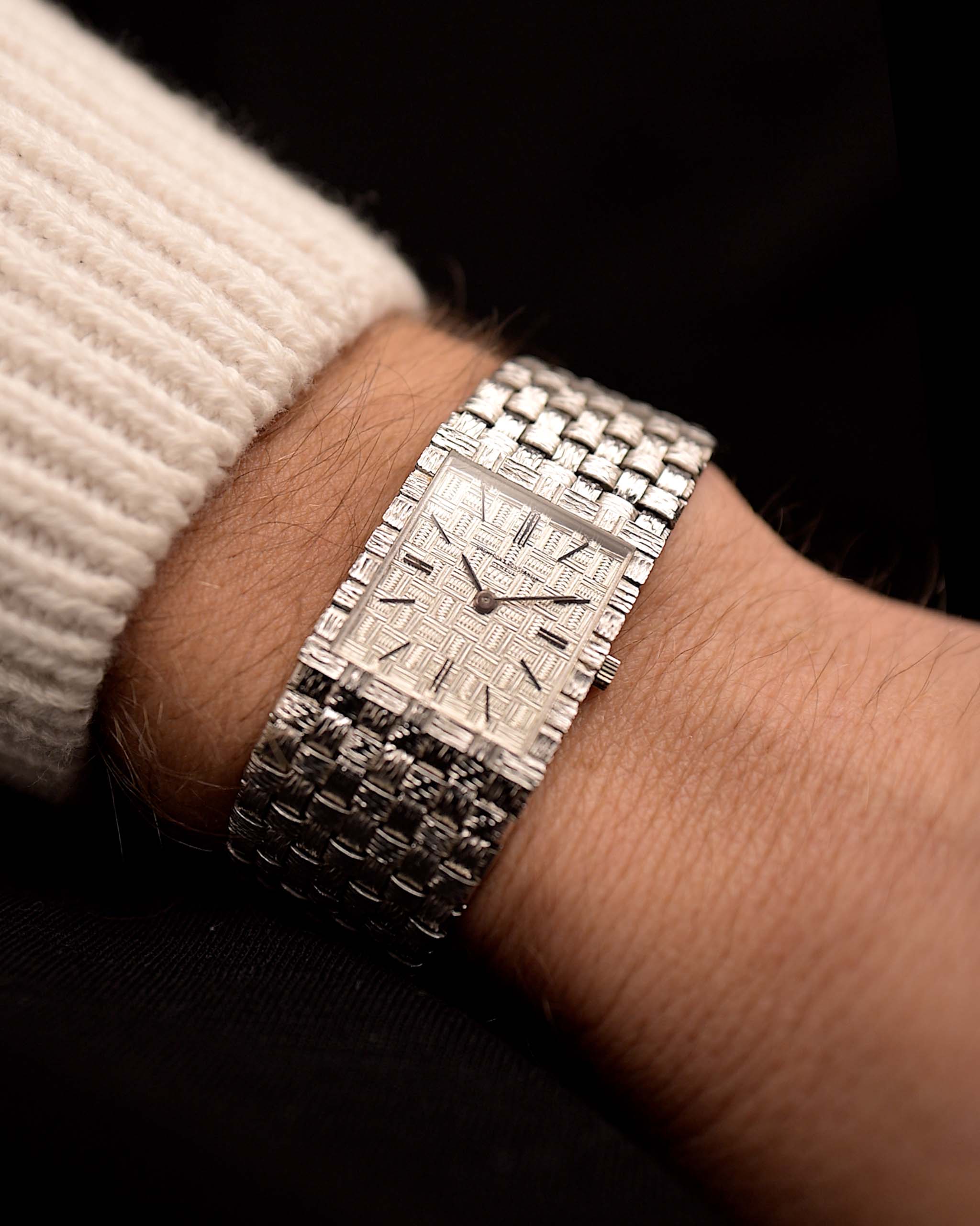 Vacheron Constantin 7186 "Basket Weave", années 70 - Une symphonie tactile en or blanc - où la texture rencontre l'élégance intemporelle.